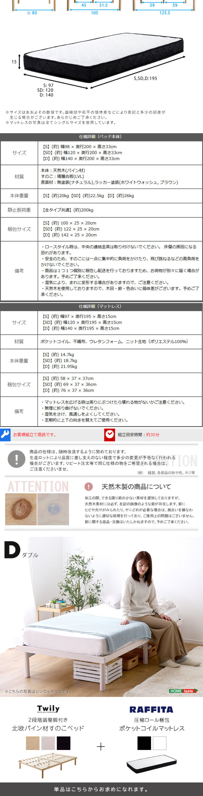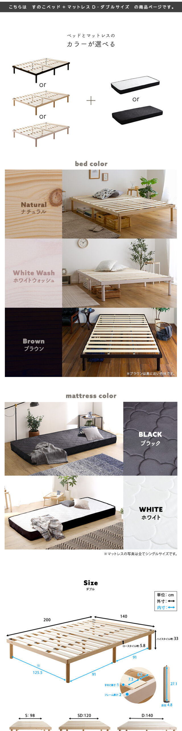 マットレス スノコベッド ダブル