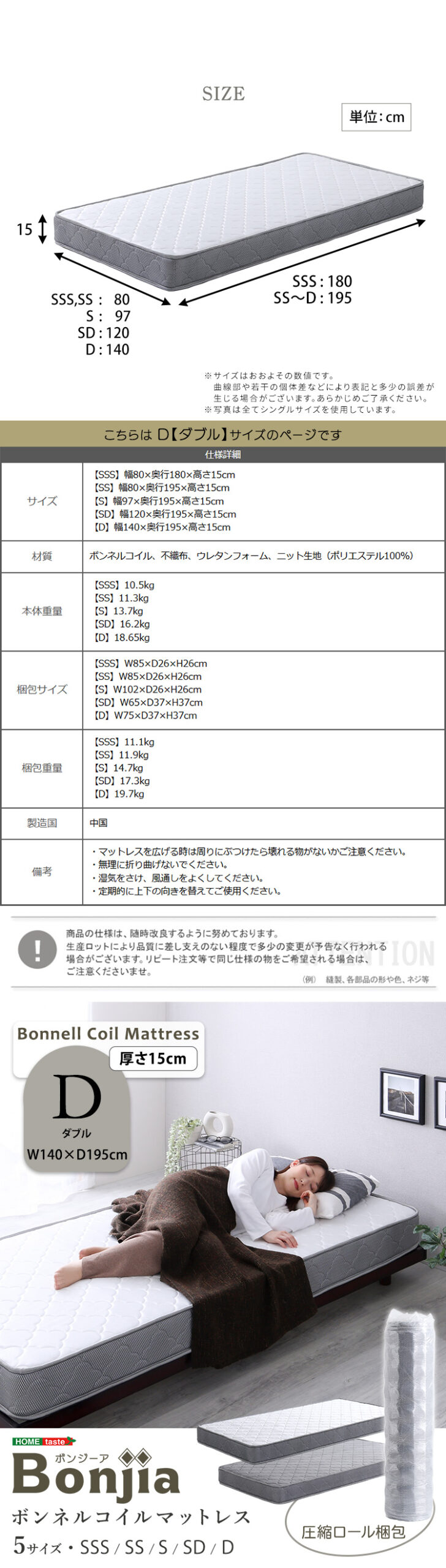 ボンネルコイルマットレス【Bonjia-ボンジーア-】ダブルサイズ
