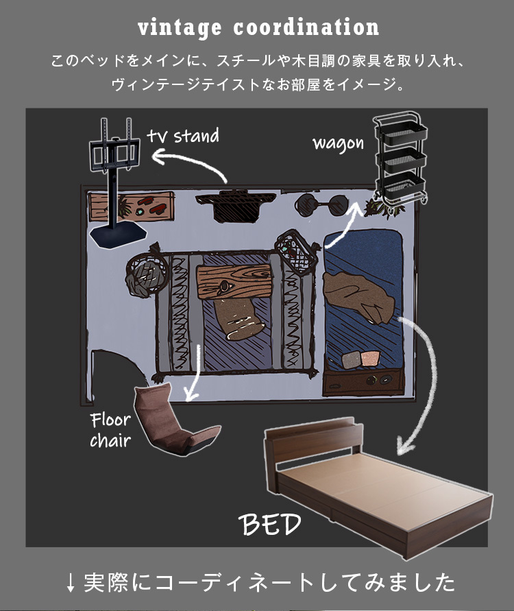インテリア チェストベッド 収納 ヴィンテージ SD