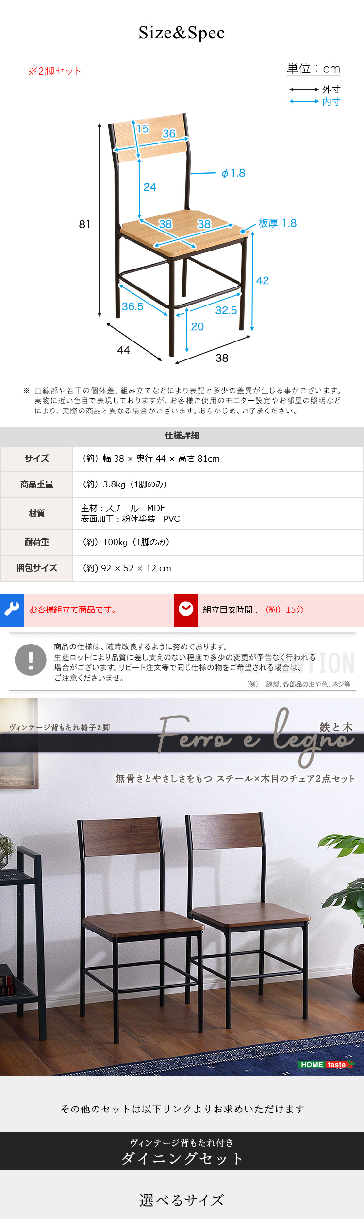 “ヴィンテージ背もたれ付きチェア2脚セット” の口コミを投稿します