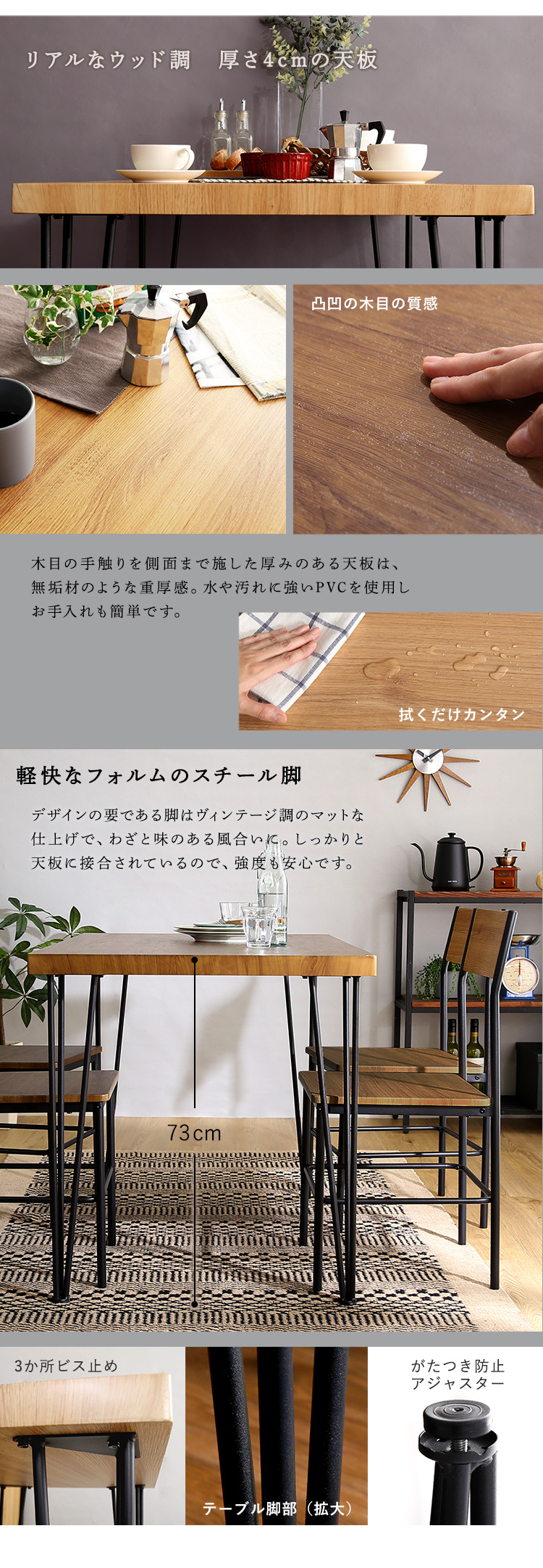 ヴィンテージ 背もたれダイニング テーブル チェア スチール