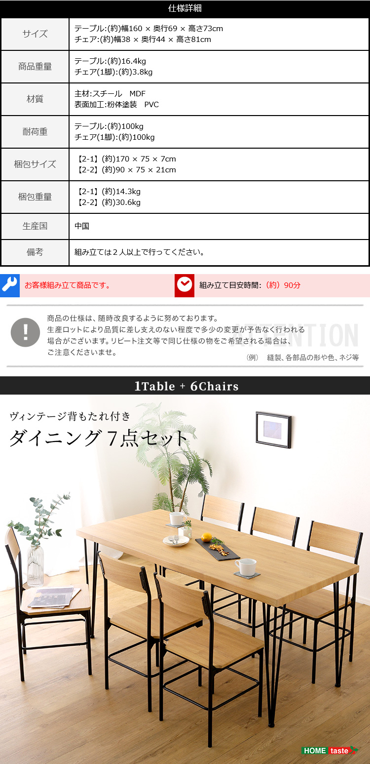 “ヴィンテージ背もたれ付きダイニング7点セット” の口コミを投稿します
