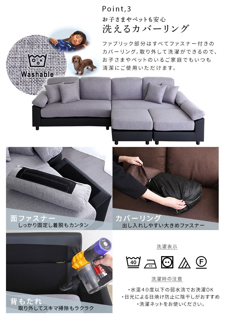 カバーリング カウチソファ PVC L字 ポケットコイル