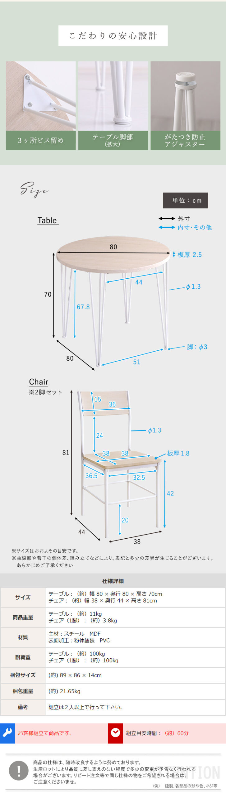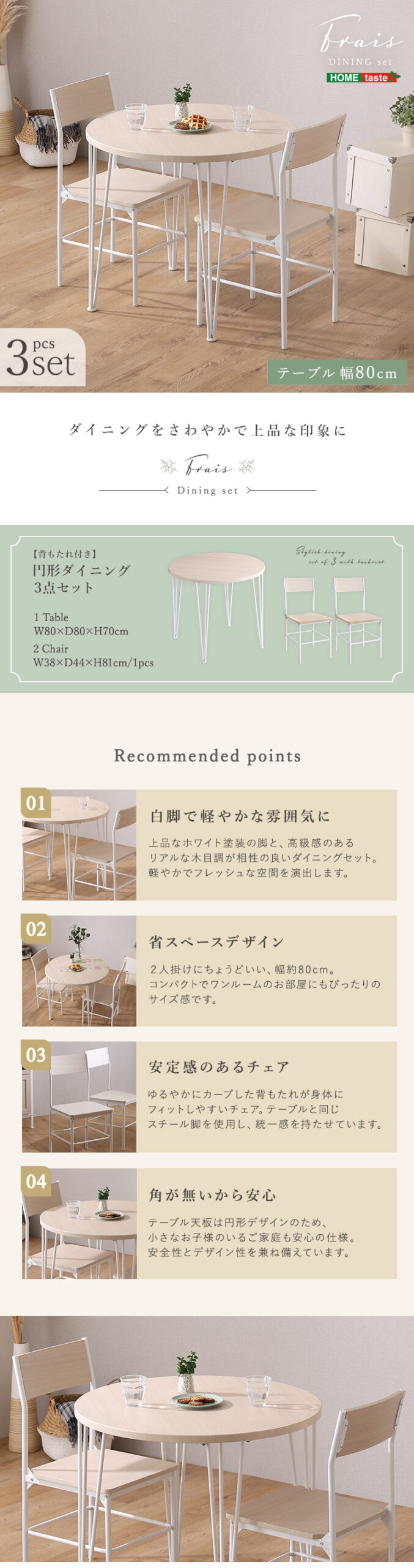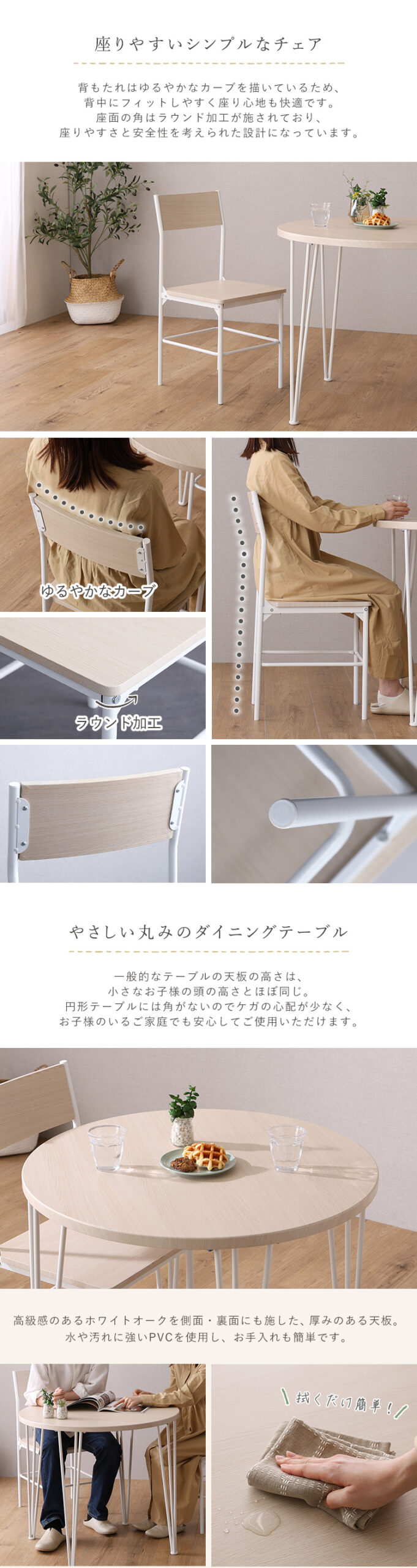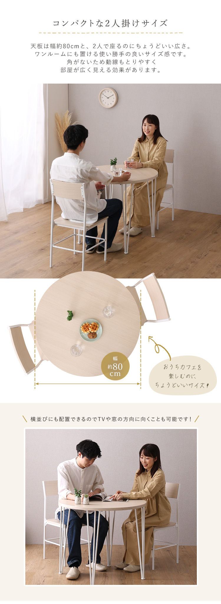 円形ダイニング 背もたれチェア テーブル さわやか 2人掛け