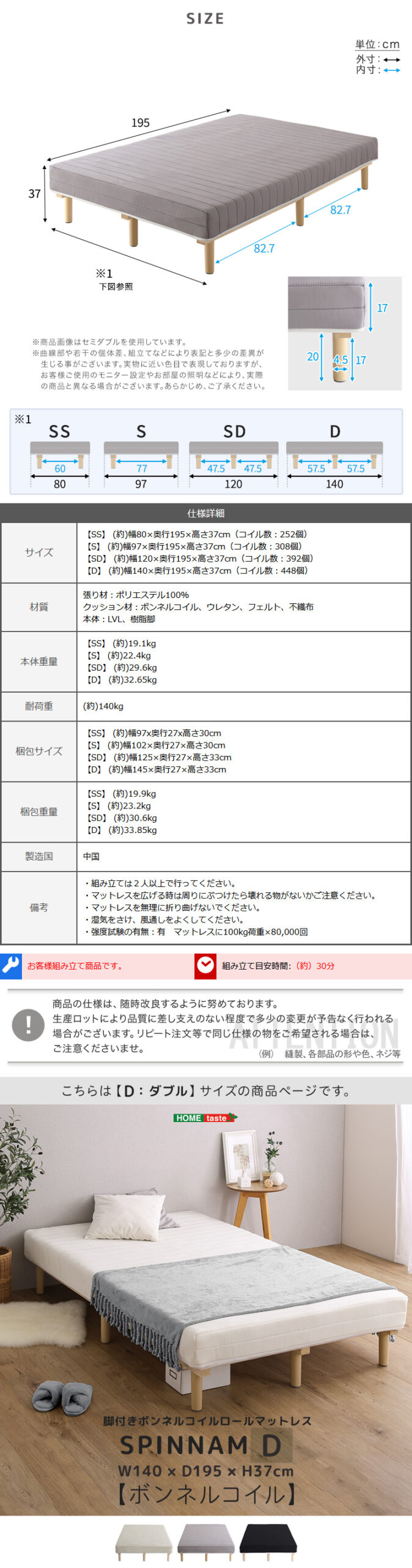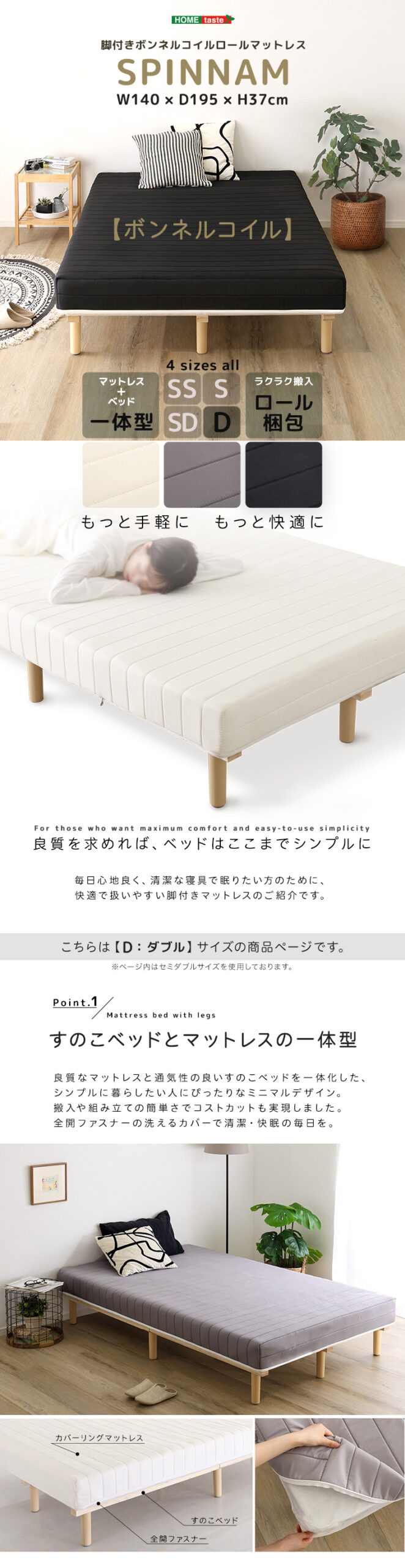 脚付きボンネルコイルロールマットレス【SPINNAM-スピンナム-】 ダブルサイズ