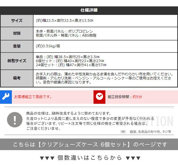 玄関収納 シューズケース コンパクトサイズ 6個セット