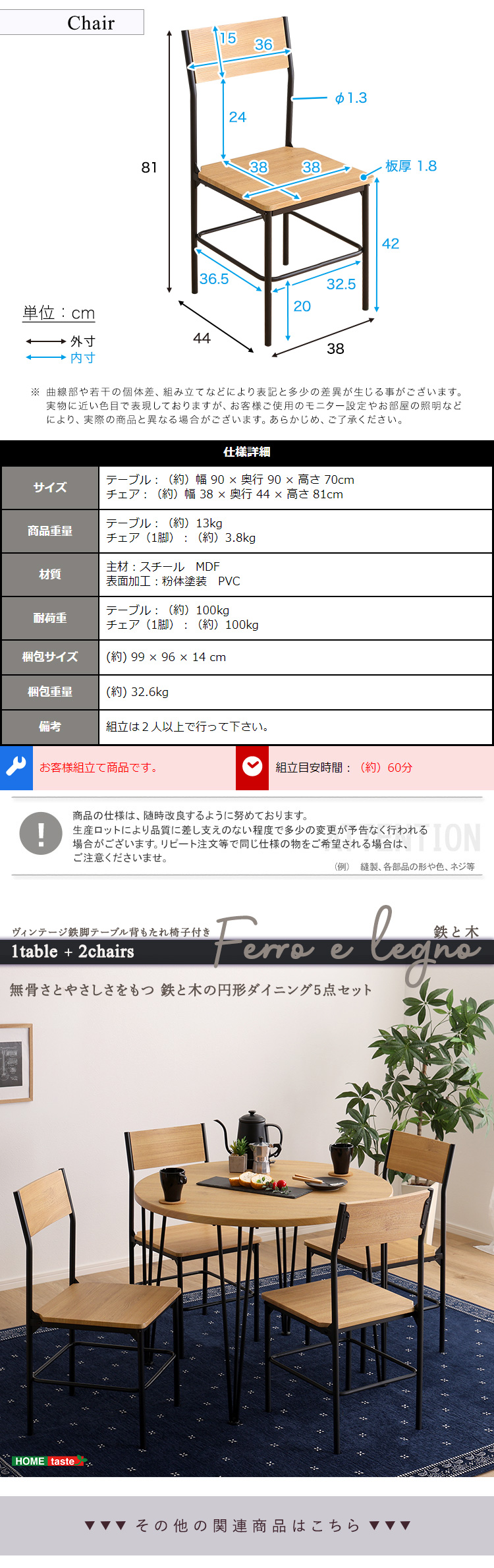 円形ダイニング 背もたれチェア テーブル ヴィンテージ 4人掛け