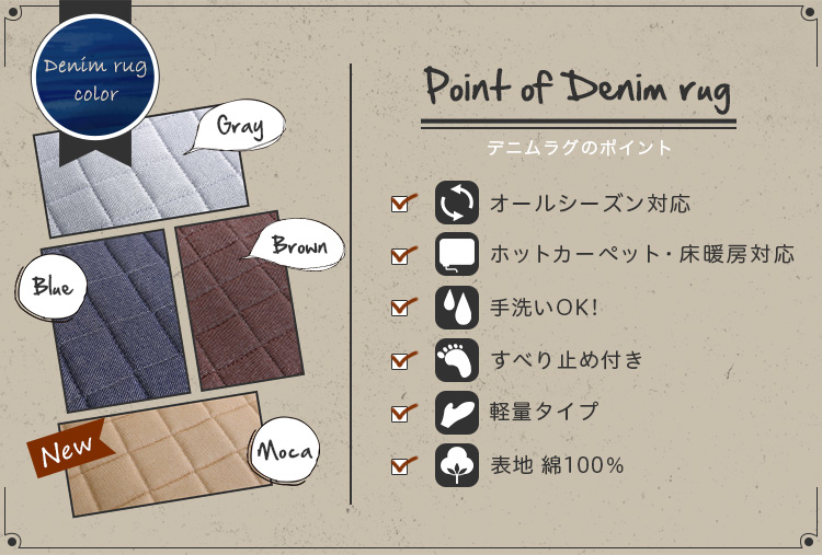 ラグ カーペット ラグマット 洗える デニム調 130x185cm