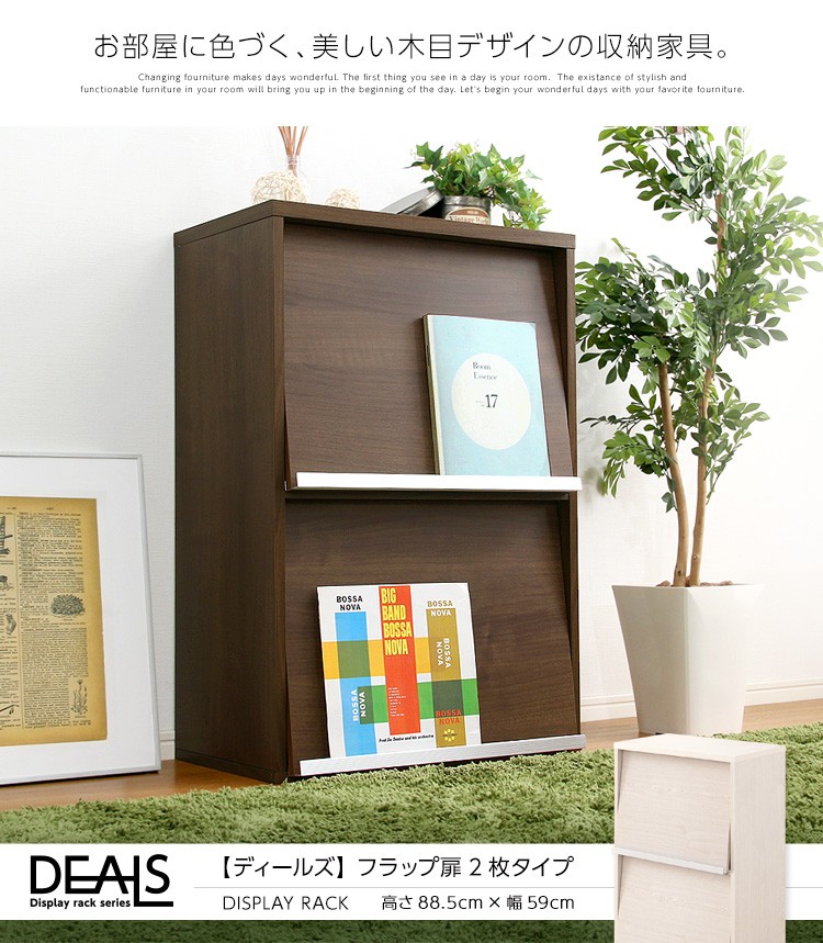 ディスプレイラック 本棚 フラップチェスト