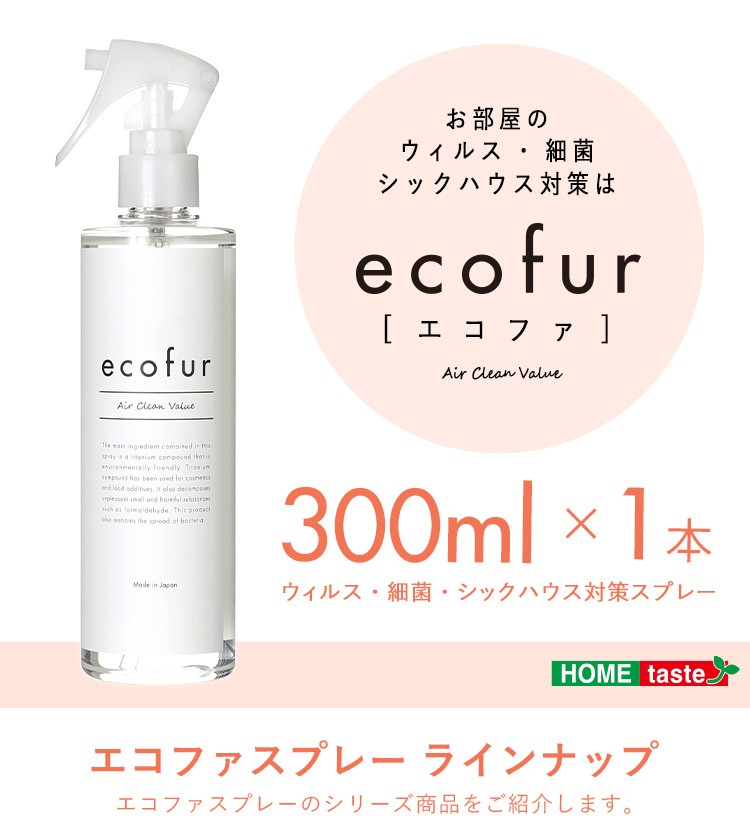 エコファ ウィルス・細菌・シックハウス対策スプレー(300mlタイプ)ウィルス、細菌、有害物質の除菌&分解、抗菌、消臭効果【ECOFUR】単品