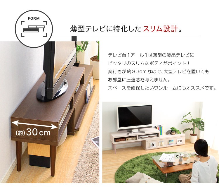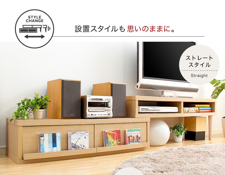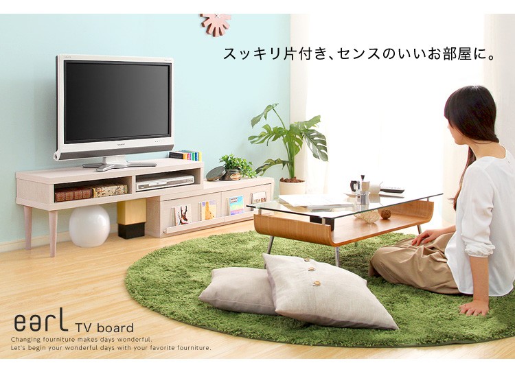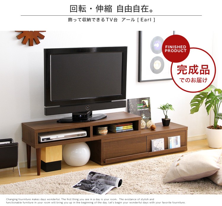 完成品伸縮式テレビ台【アール-EARL】(コーナーTV台・ローボード・リビング収納)