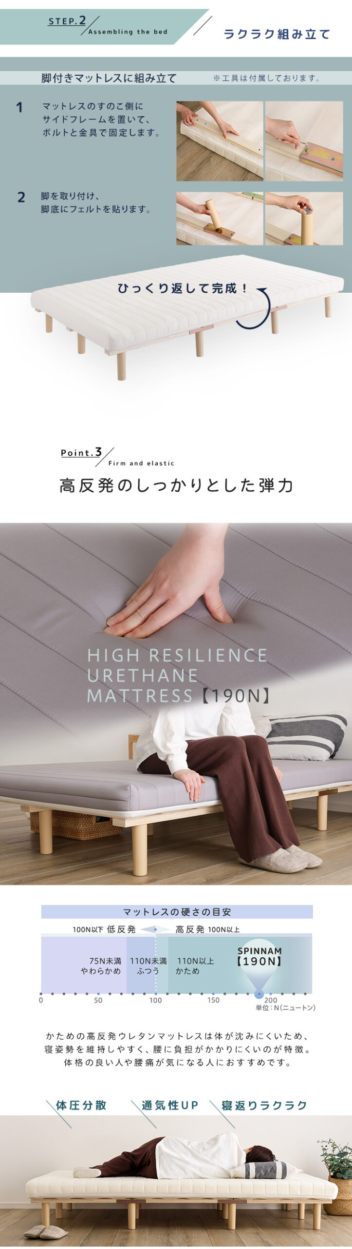 脚付きマットレス マットレス ベッド