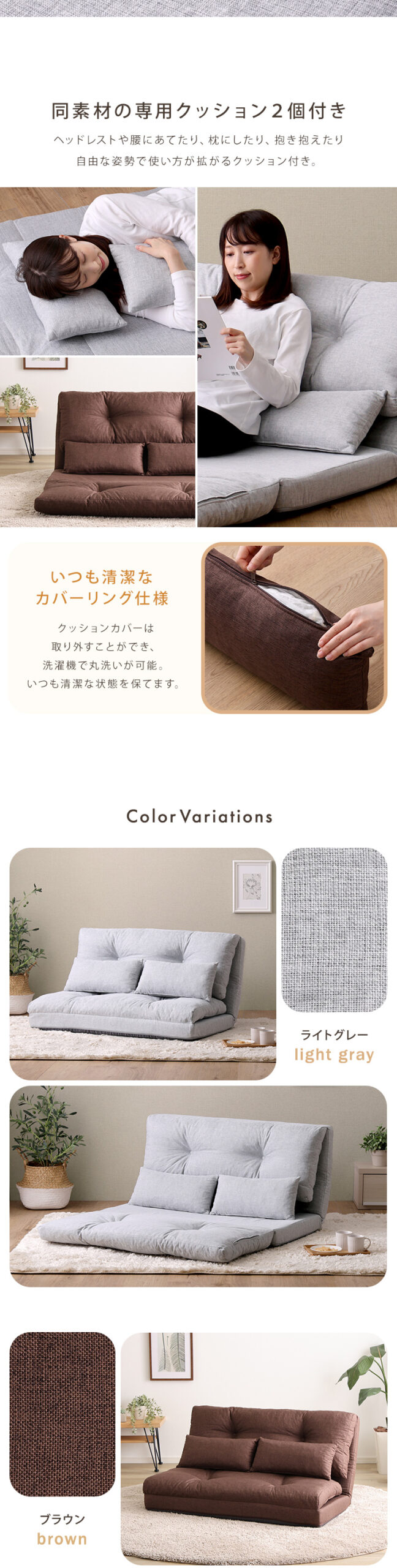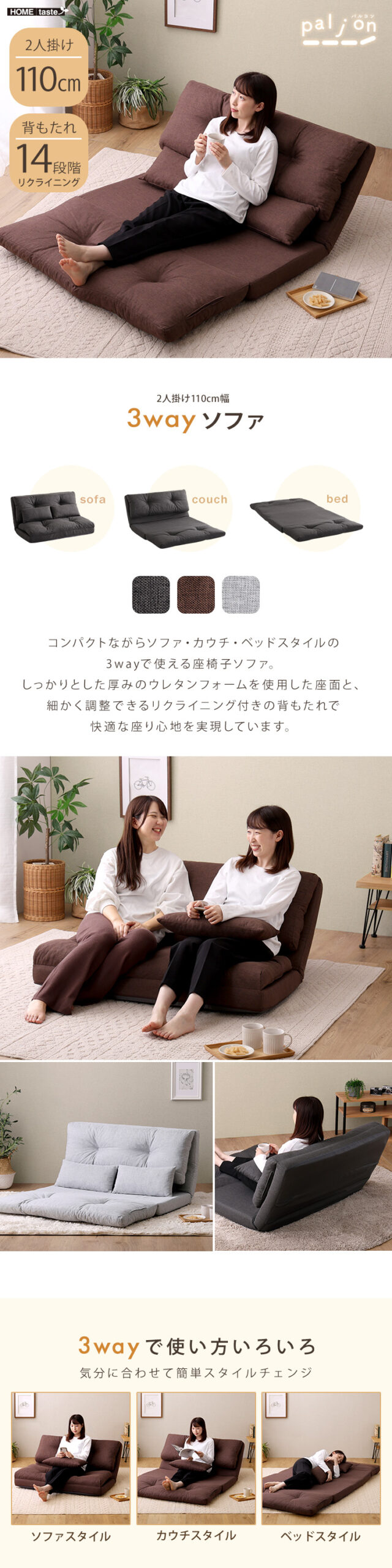 3wayソファ ソファベッド カウチソファ 座椅子 2P
