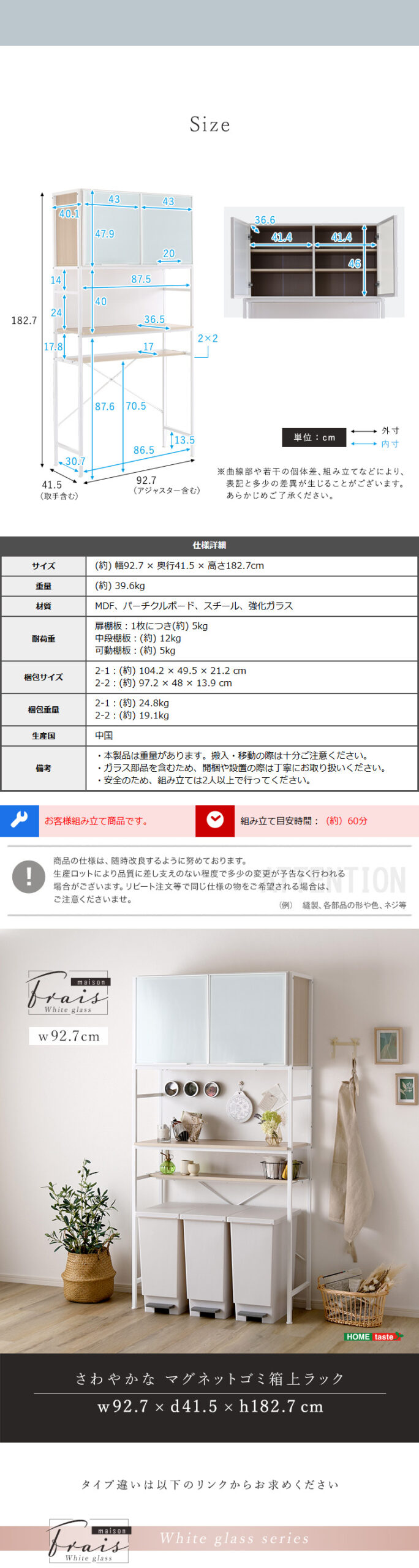 収納 さわやか食器棚 キッチン収納 食器棚 ゴミ箱上ラック