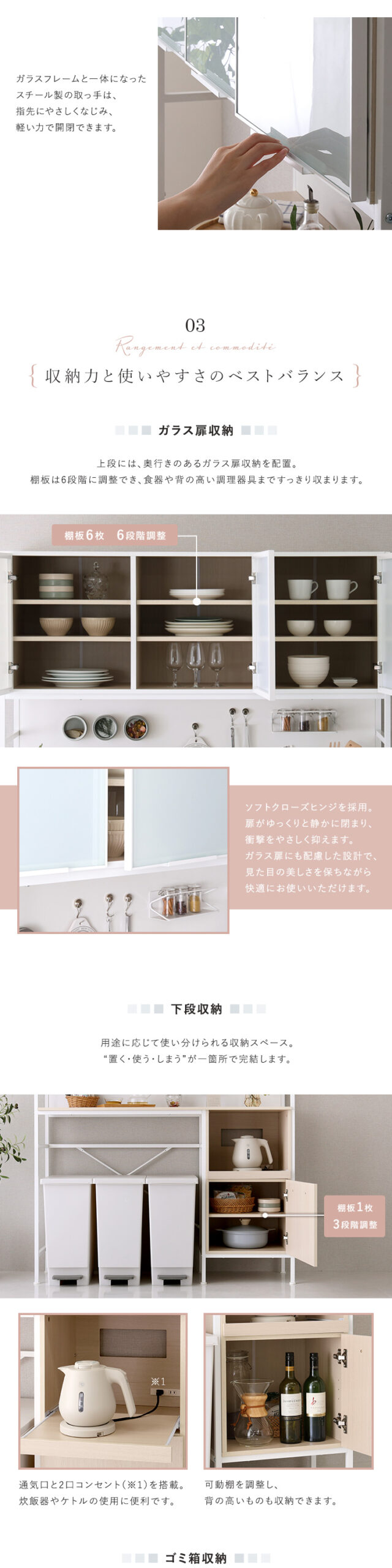 収納 さわやか食器棚 キッチン収納 食器棚 ゴミ箱上ラック