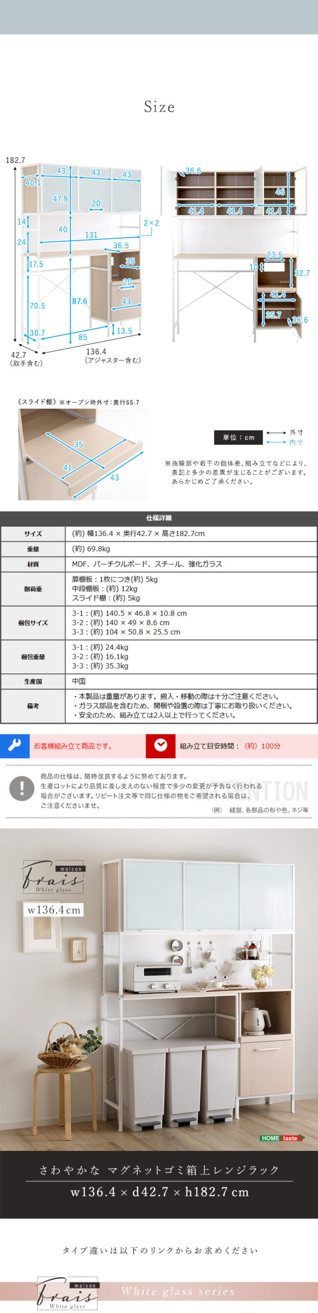 “さわやかなマグネットゴミ箱上レンジラック ホワイトガラス【Frais-フレ-】” の口コミを投稿します