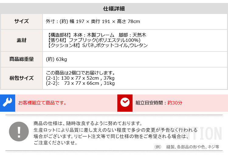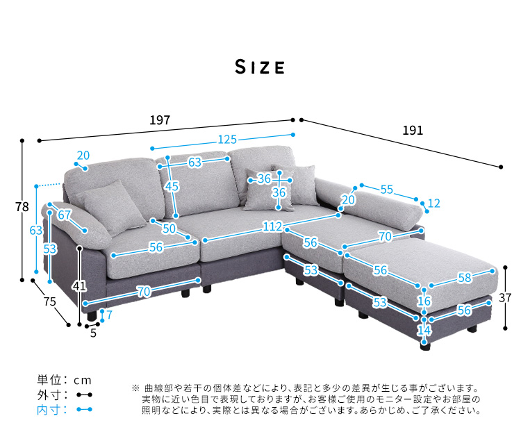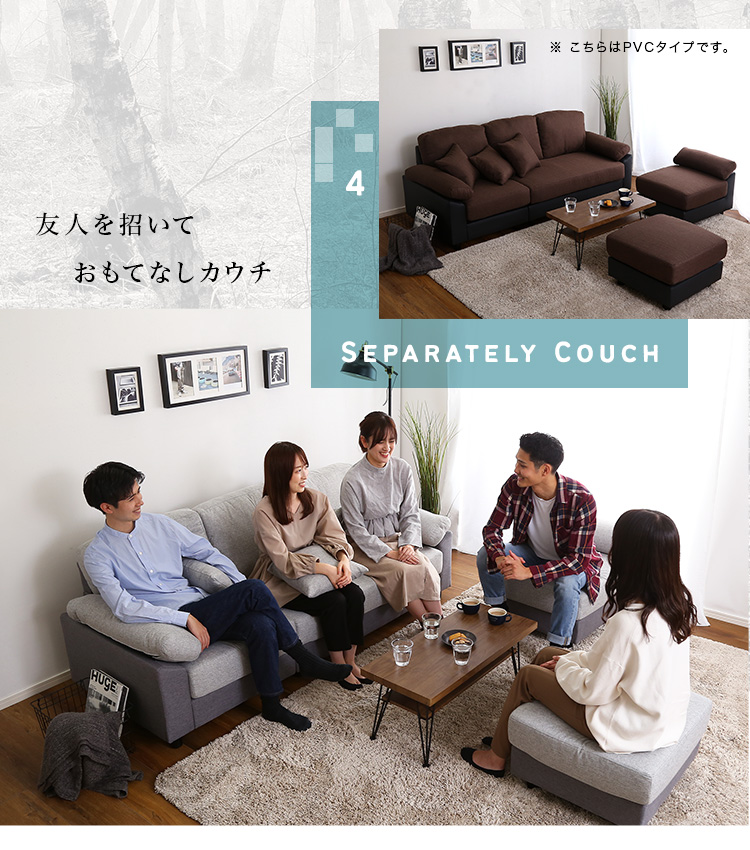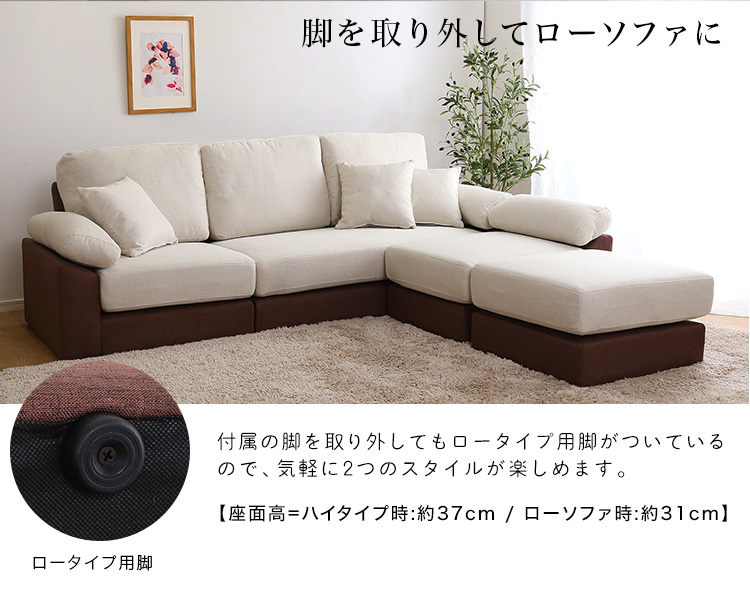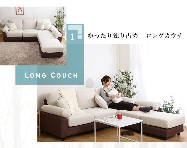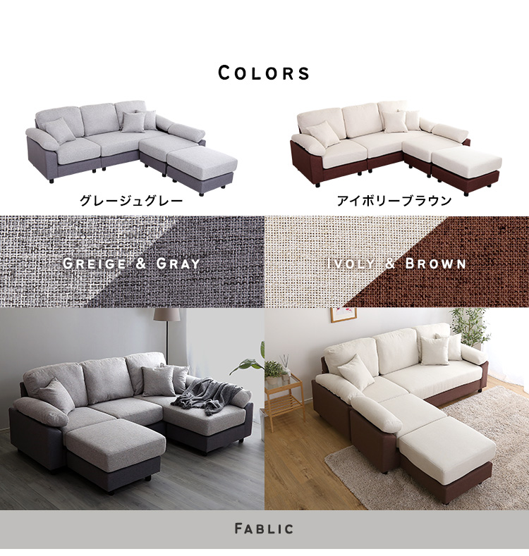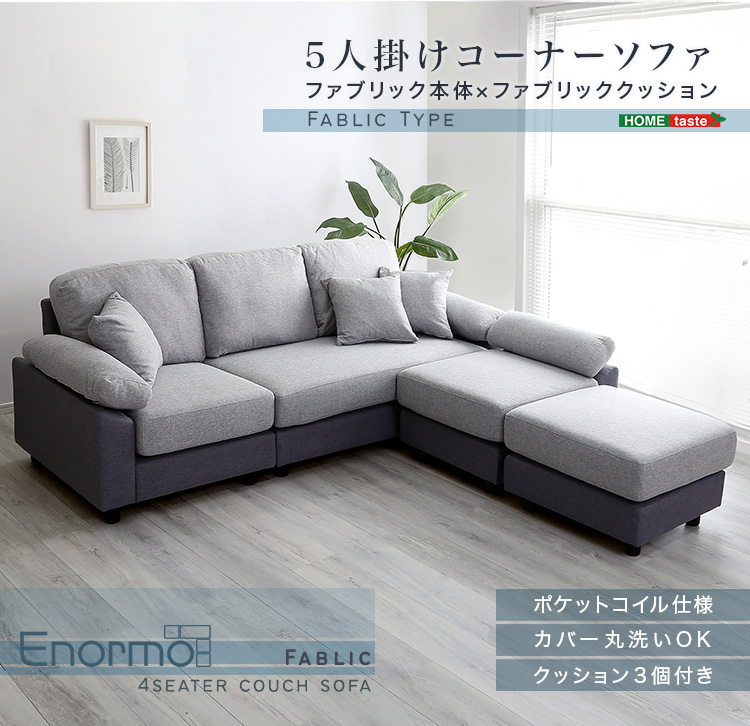 ソファ カウチソファ 5人掛け 4人掛け クッション付き