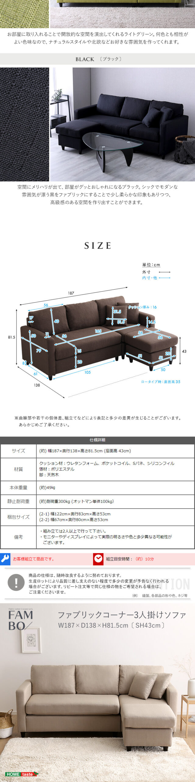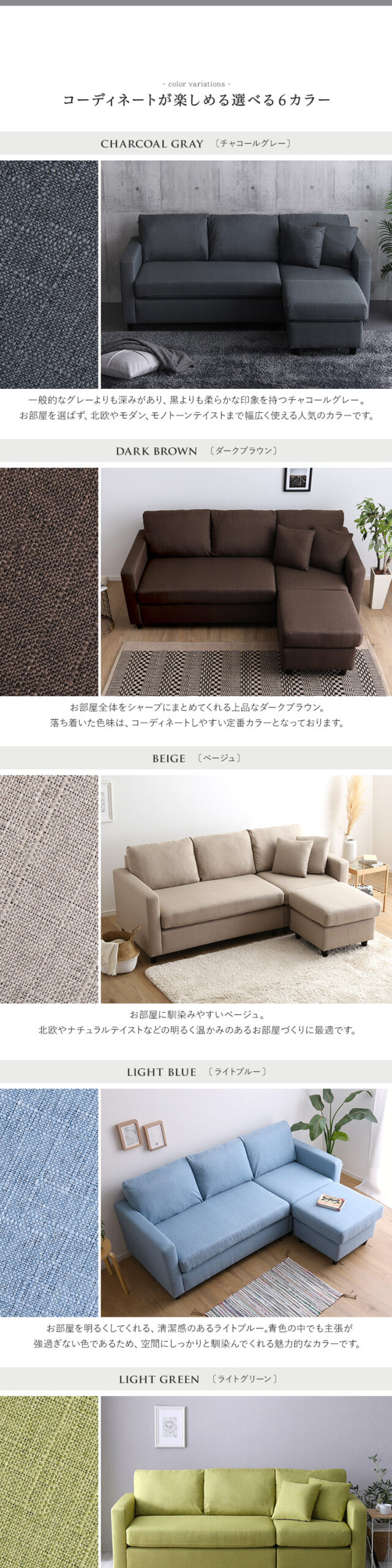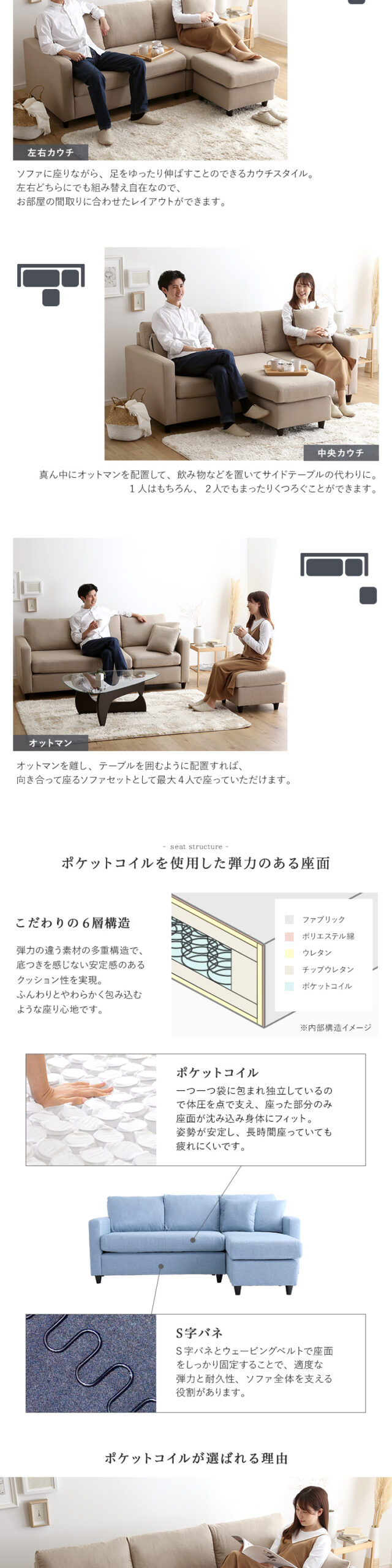 ソファ 3人掛け ファブリック オットマン付き コーナーソファ