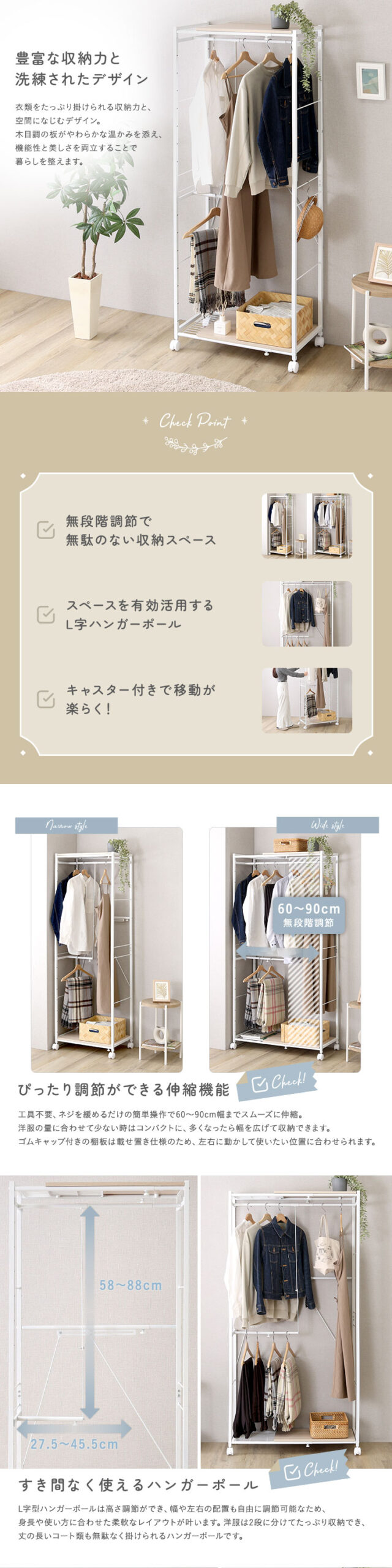 さわやかな 調節可能伸縮ハンガーラック