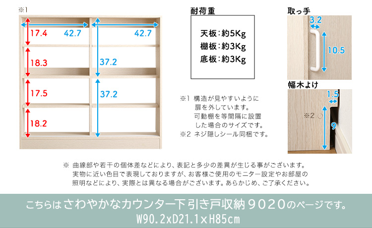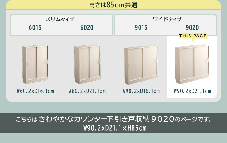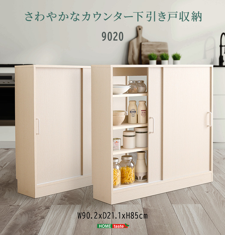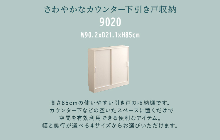 カウンター下収納 引き戸 幅90cm 奥行20cm 収納