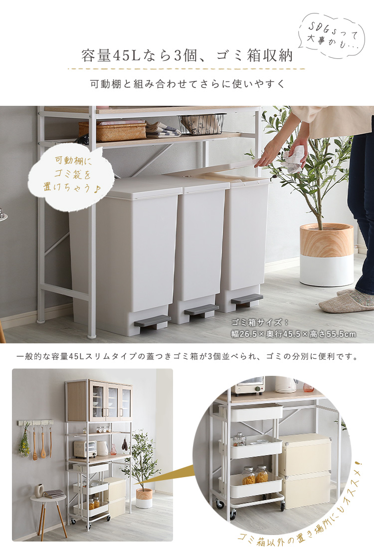 さわやかなオシャレゴミ箱上ラック ワイドタイプ【Frais-フレ-】