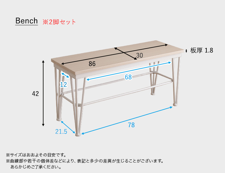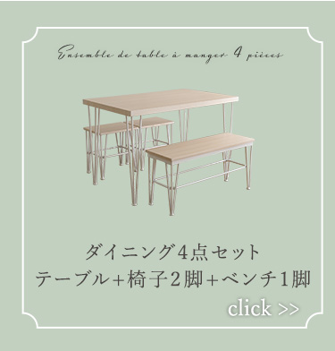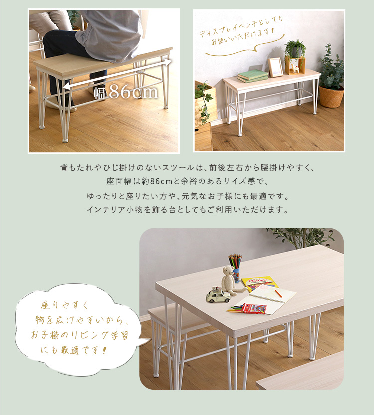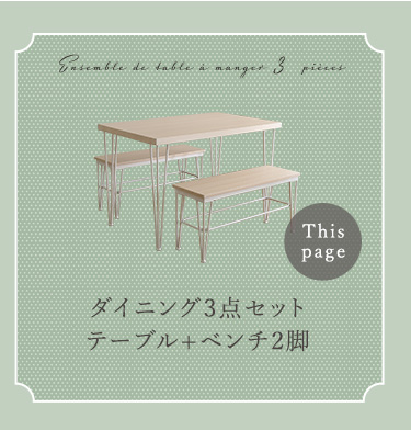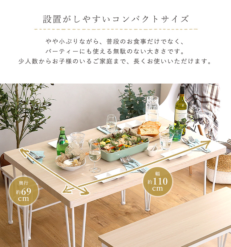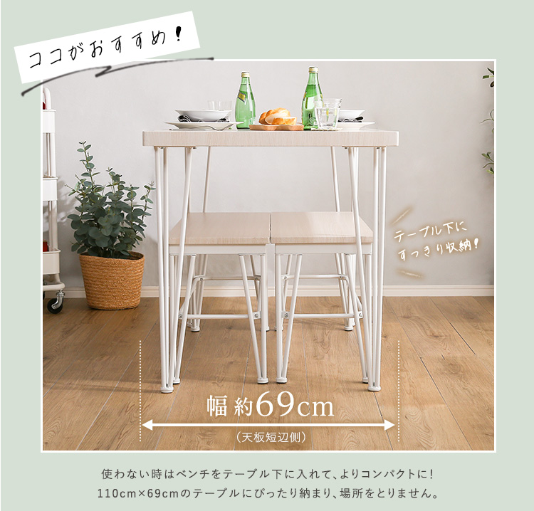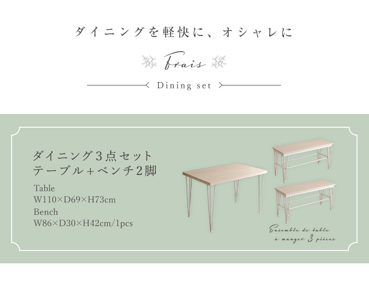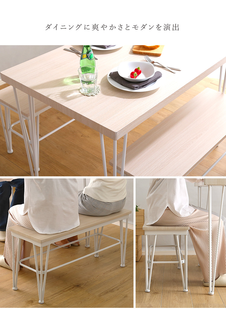 さわやかなダイニング3点セット【テーブル+ベンチ2脚】
