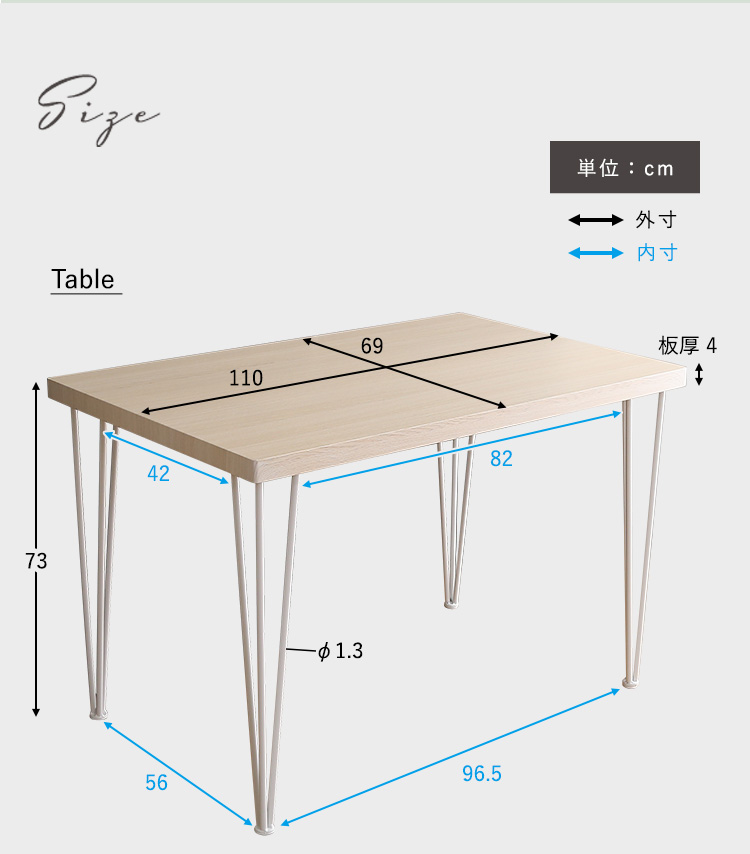 ダイニングテーブル さわやか ホワイト アイアン 4人掛け