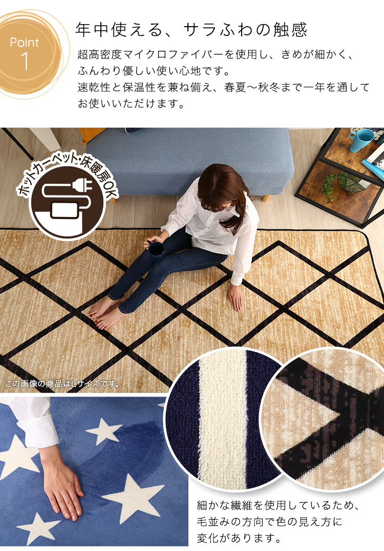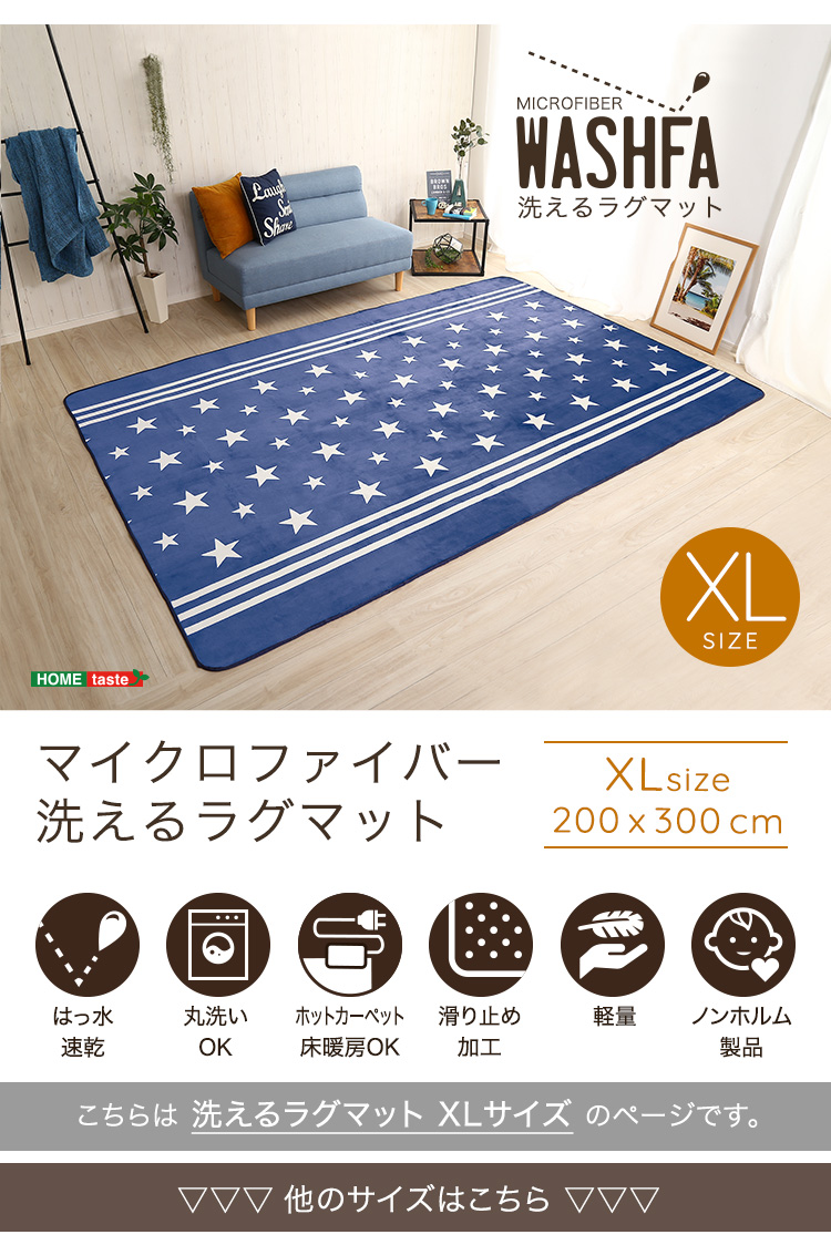 マイクロファイバー・デザインラグマットXLサイズ(200×300cm)洗えるラグマット 【WASHFA】