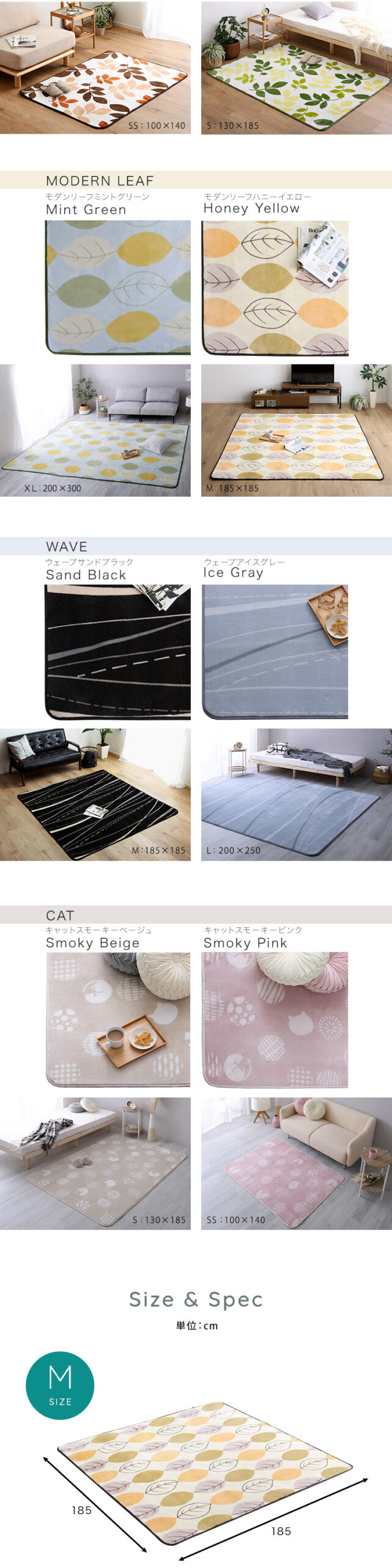 アイスグレー, サンドブラック, スモーキーピンク, スモーキーベージュ, ハッパグリーン, ハッパベージュ, ハニーイエロー, ミントグリーン