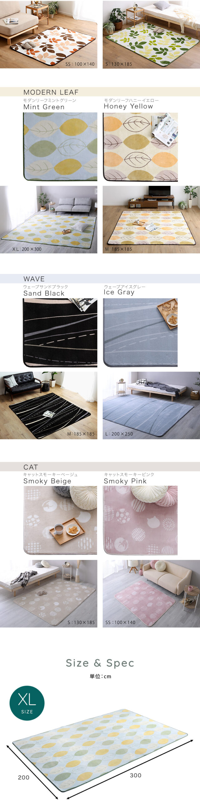 アイスグレー, サンドブラック, スモーキーピンク, スモーキーベージュ, ハッパグリーン, ハッパベージュ, ハニーイエロー, ミントグリーン