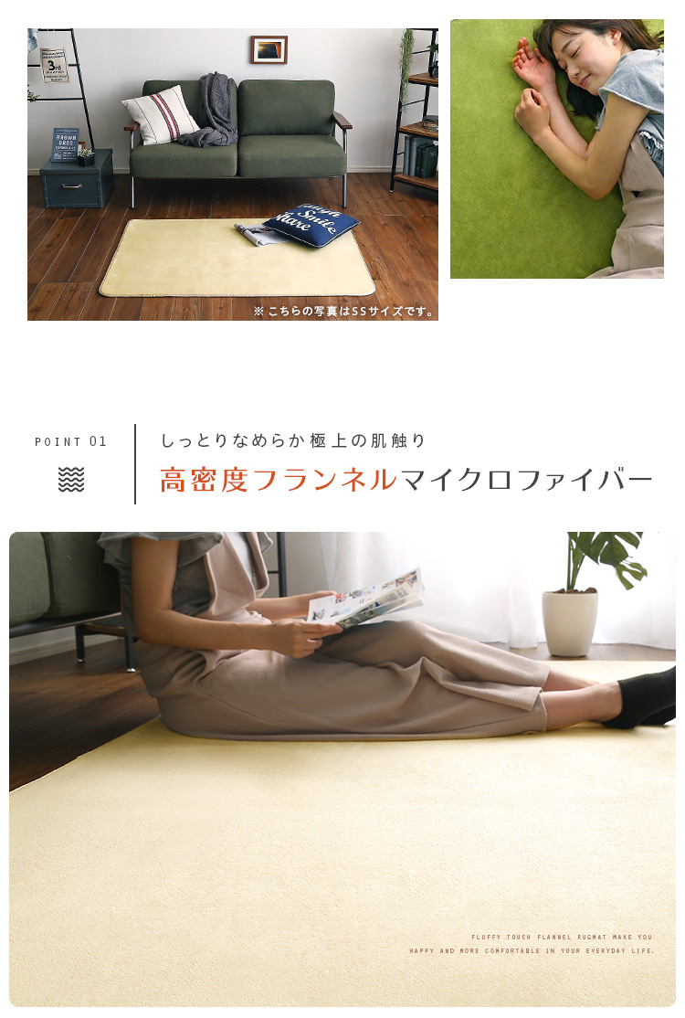 高密度フランネルマイクロファイバー・ラグマットSサイズ(130×185cm)洗えるラグマット|ナルトレア