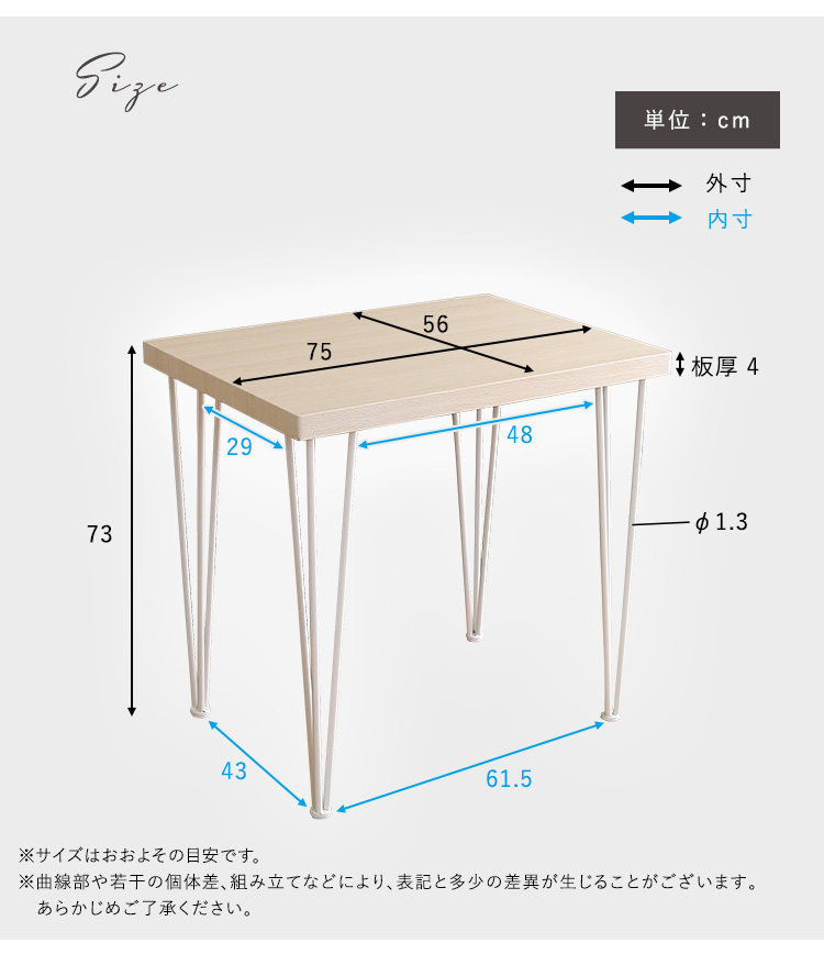 ダイニングテーブル 爽やか おしゃれ 北欧 韓国 幅75cm