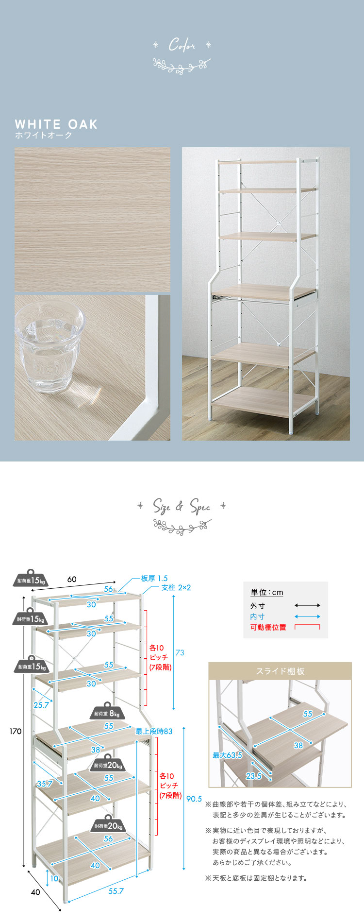 スライド棚:(約)8kg