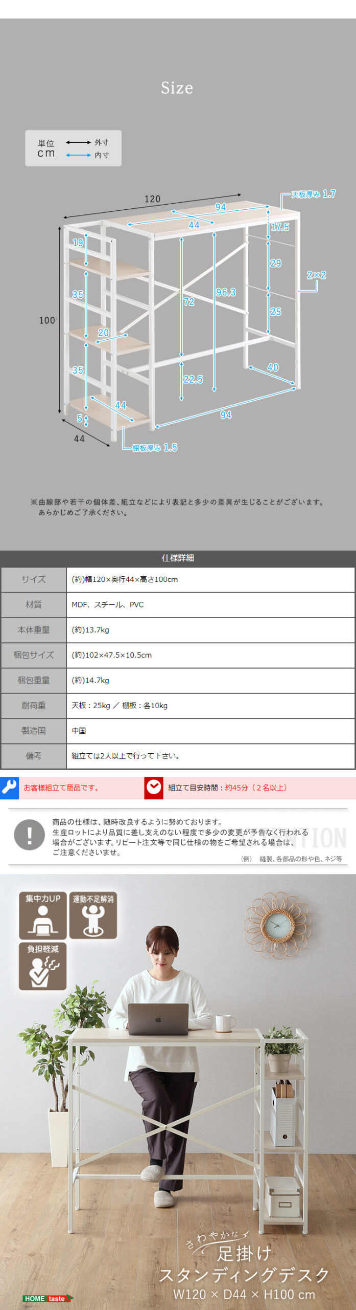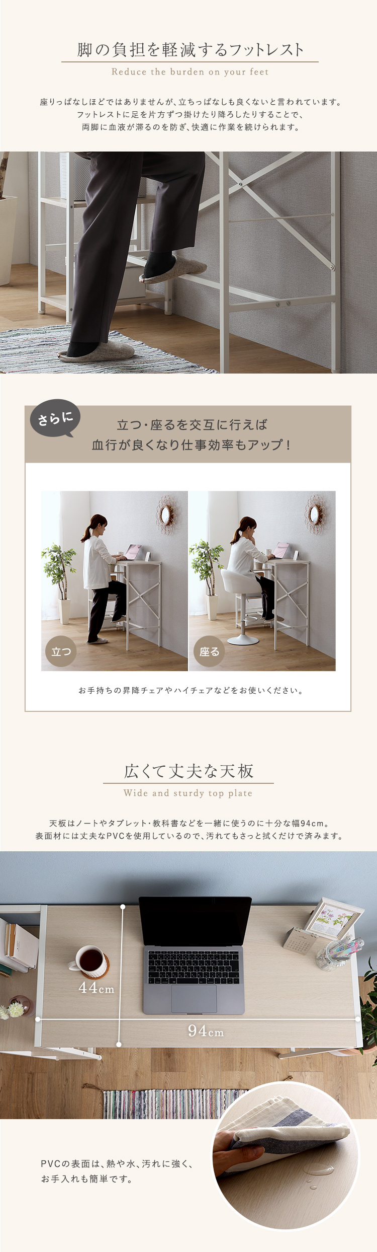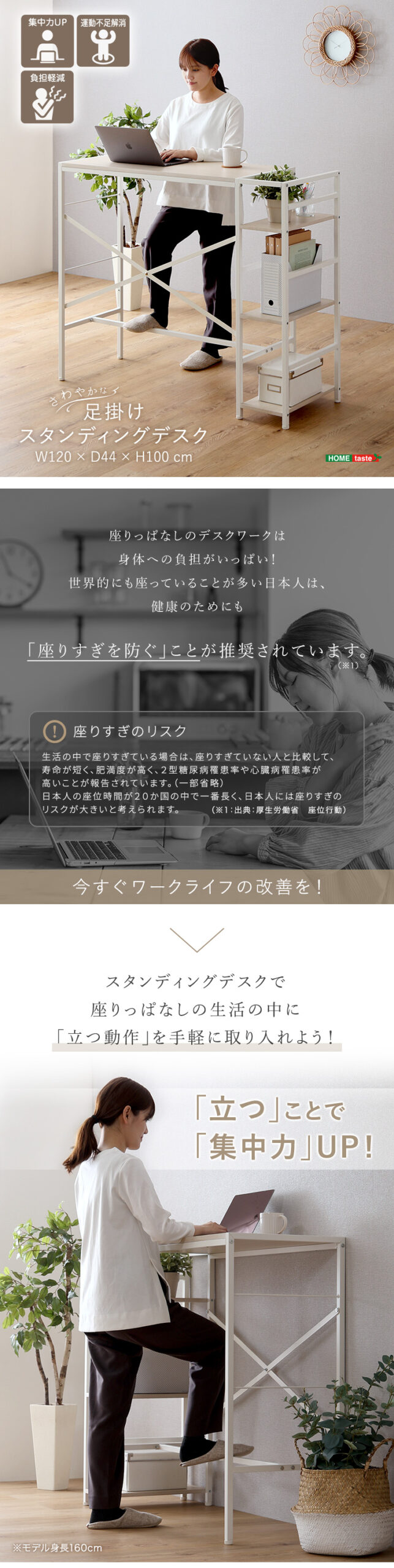 足掛け スタンディングデスク 幅120 足置き