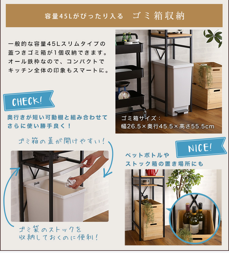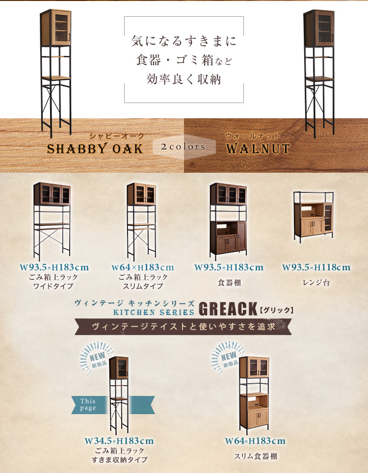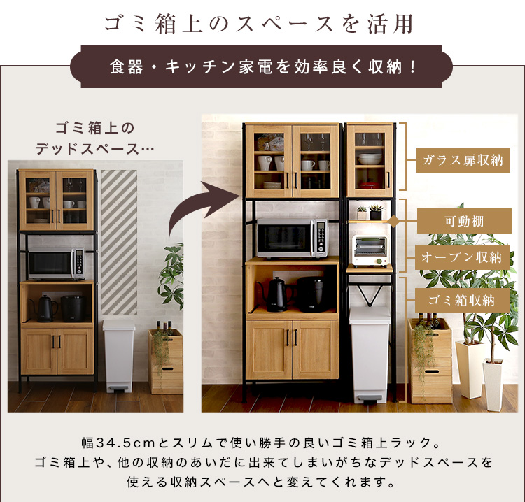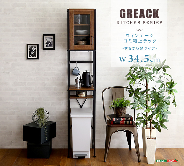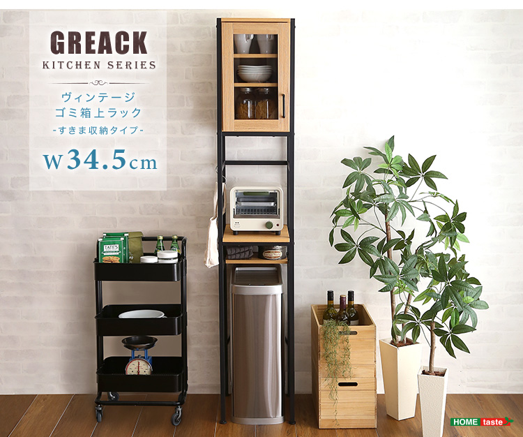 収納 ヴィンテージ食器棚 ゴミ箱上ラック スリム キッチン 食器棚