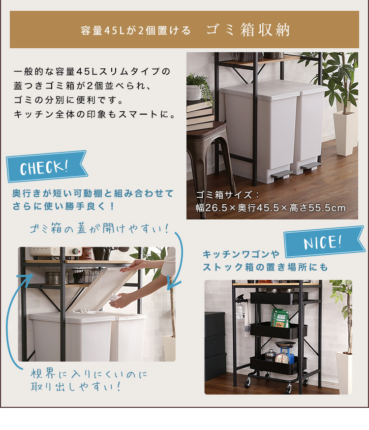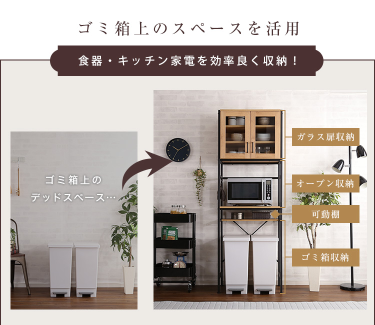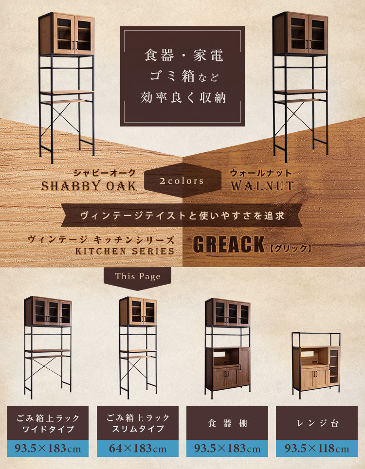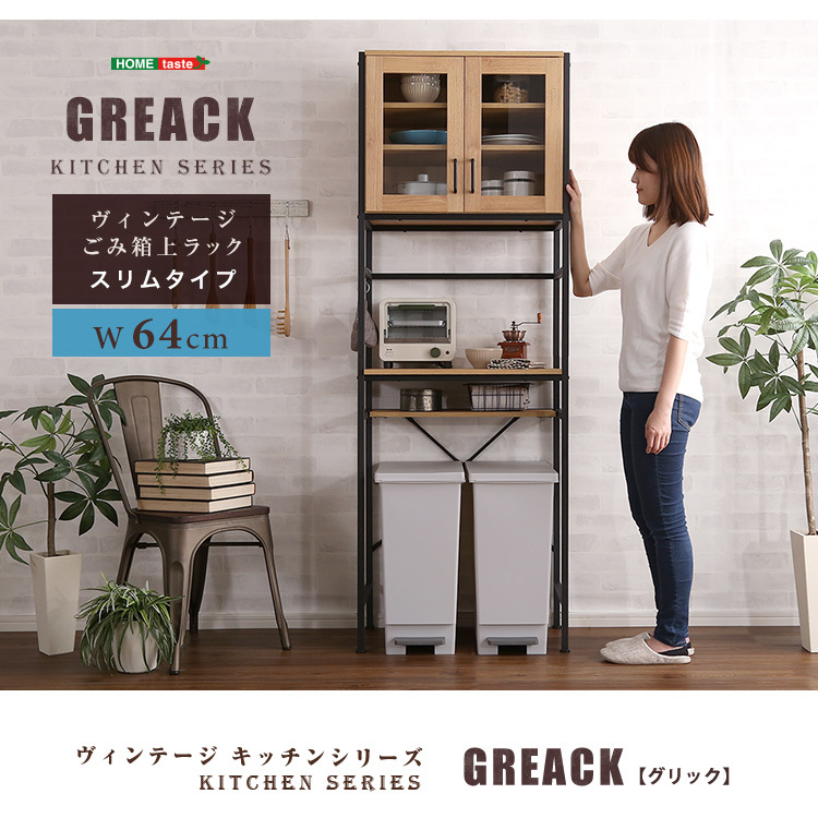 ヴィンテージ食器棚 ゴミ箱上ラック スリムタイプ