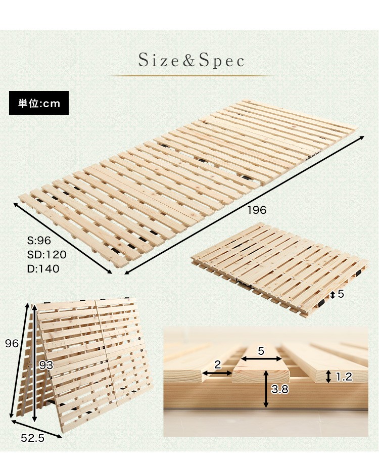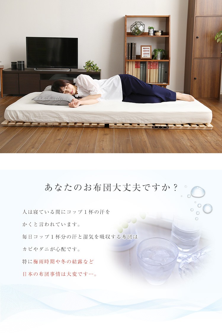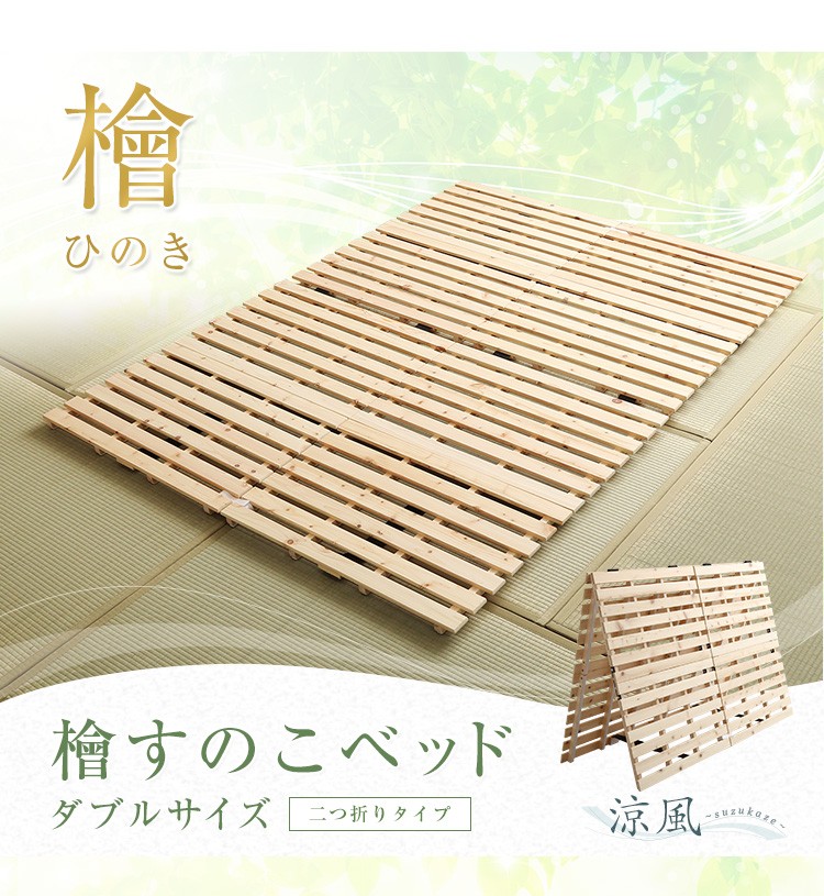 すのこベッド二つ折り式 檜仕様(ダブル)【涼風】