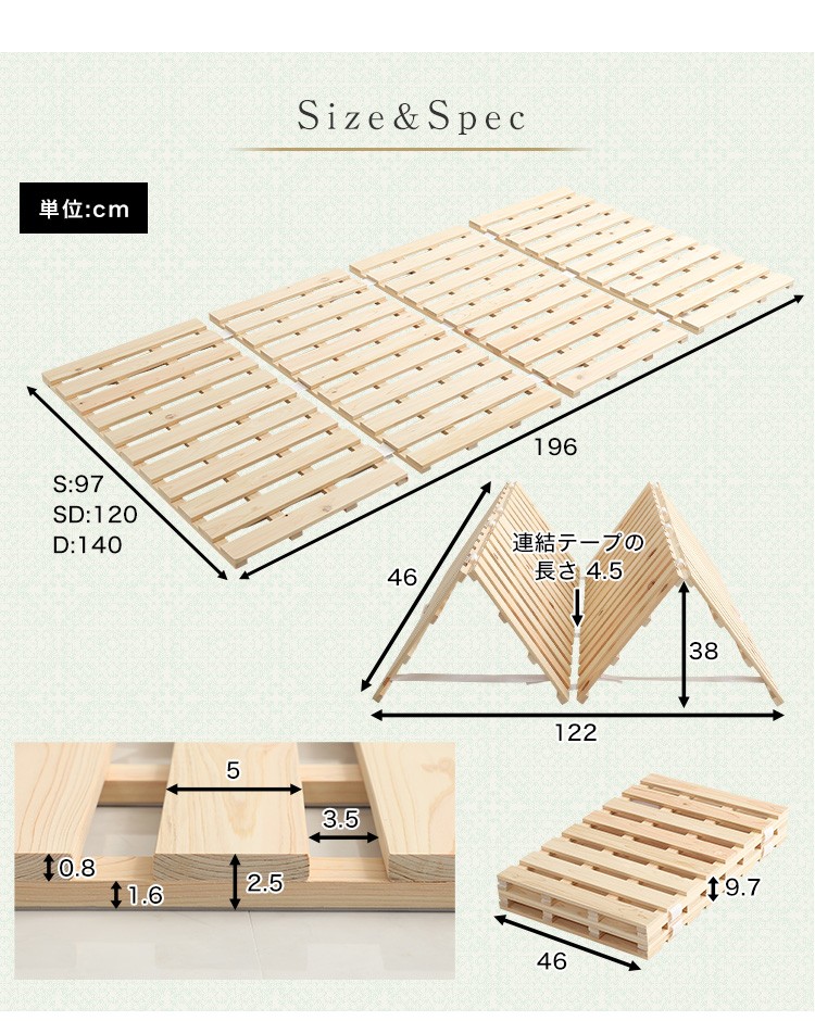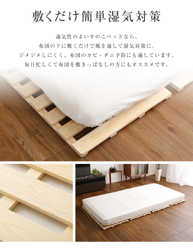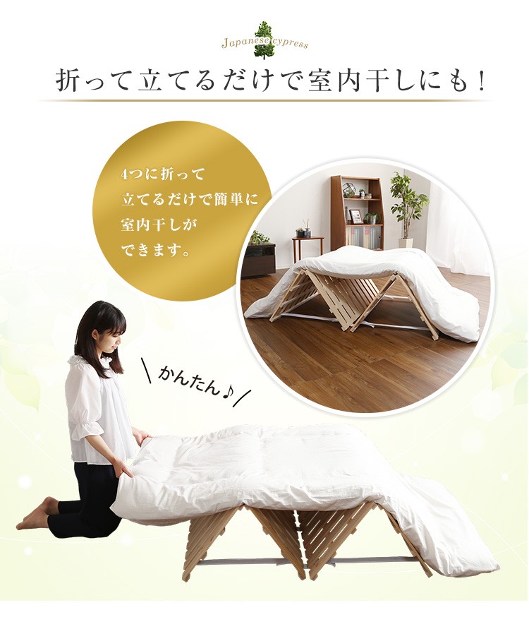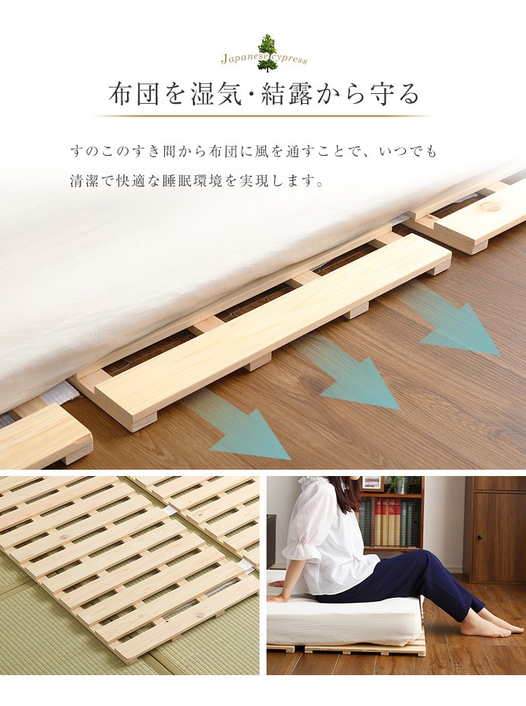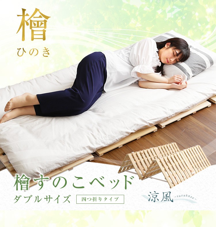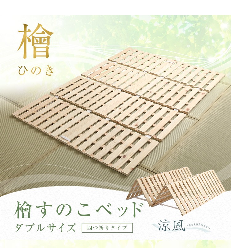 すのこベッド四つ折り式 檜仕様(ダブル)【涼風】