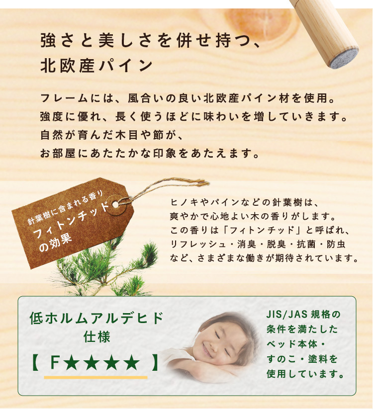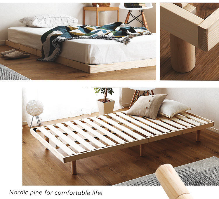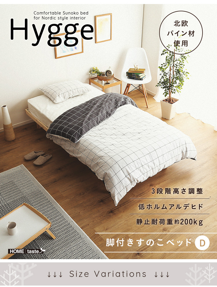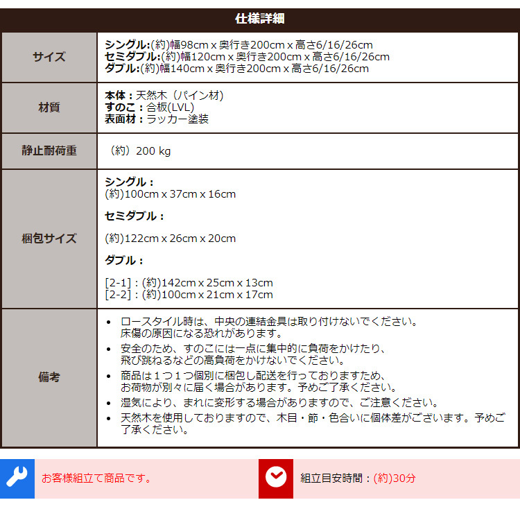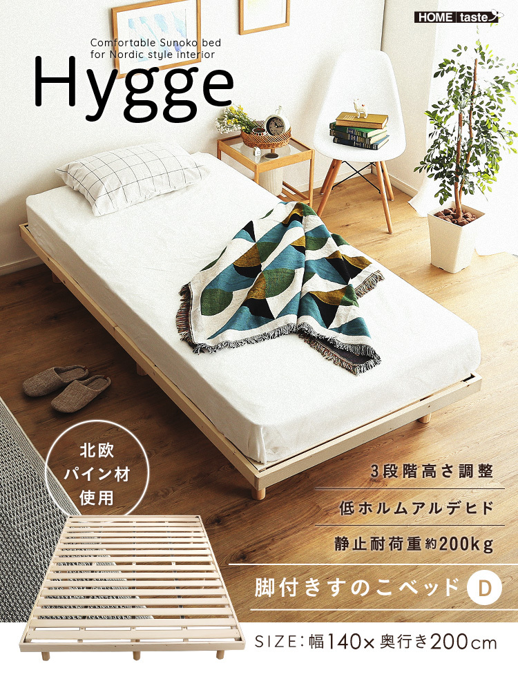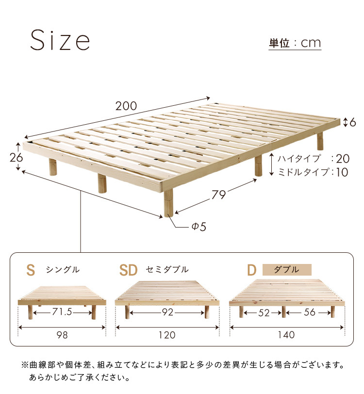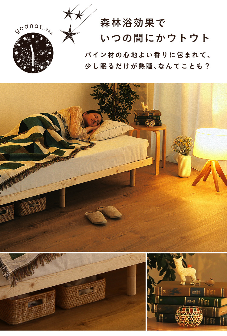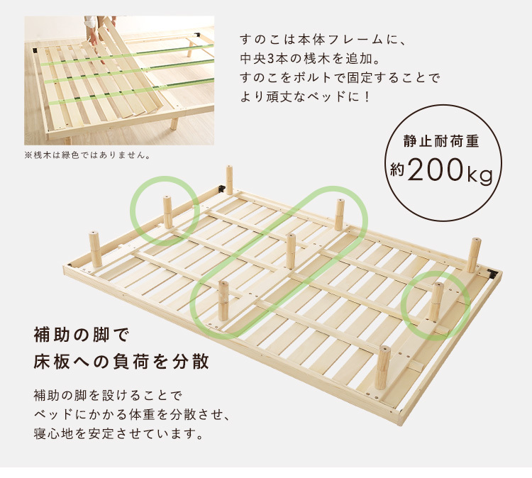 脚付きすのこベッド パイン材 天然木 ダブル 高さ調整