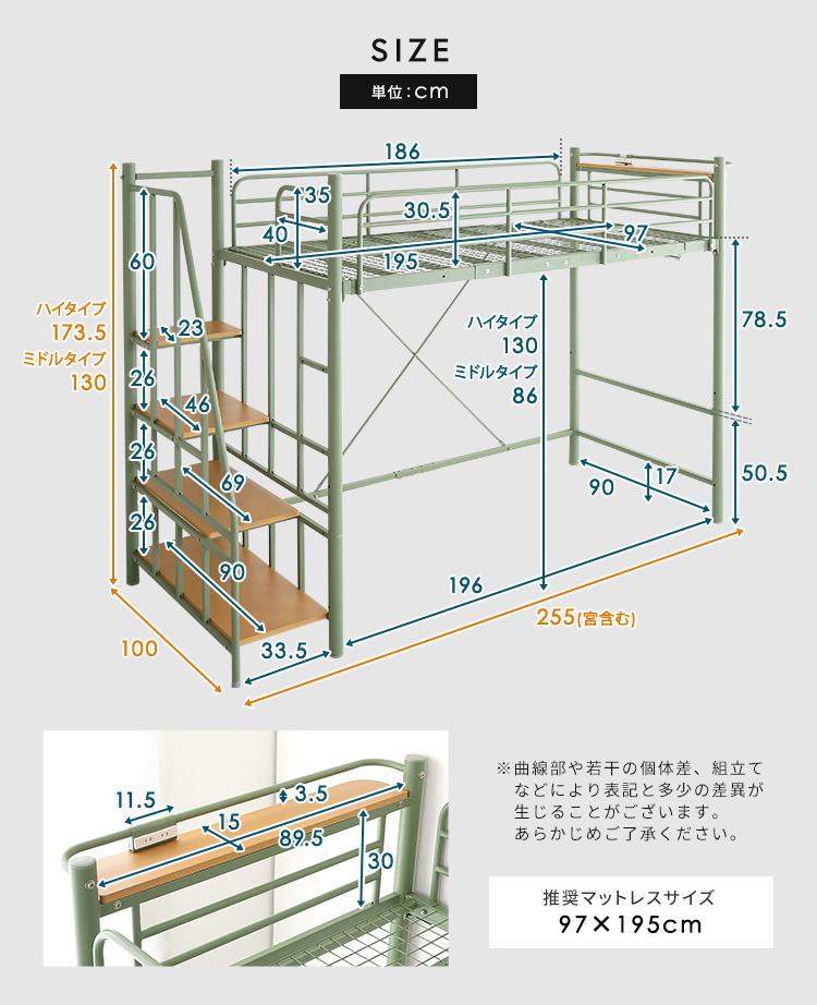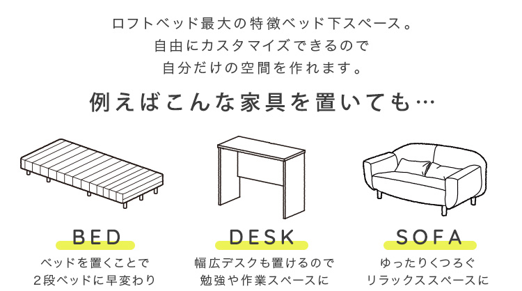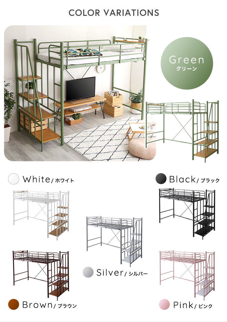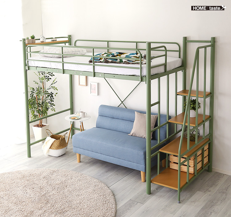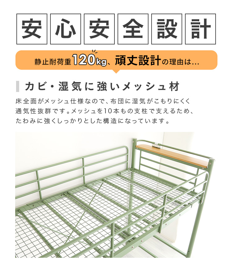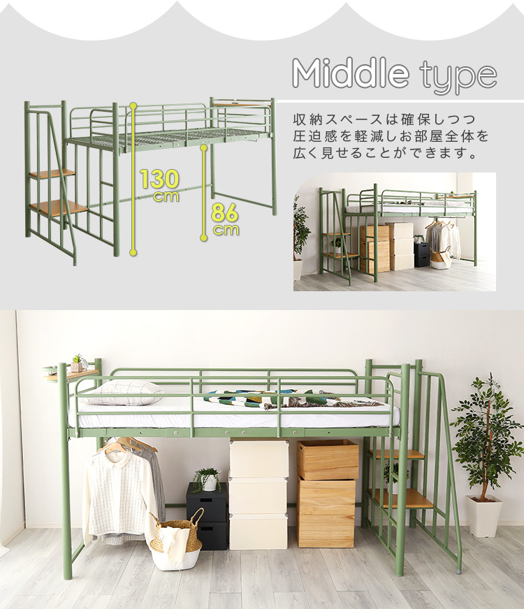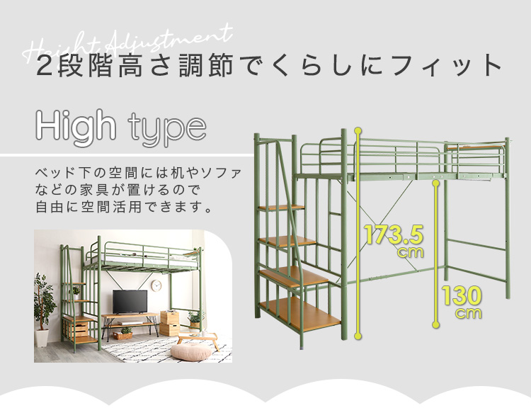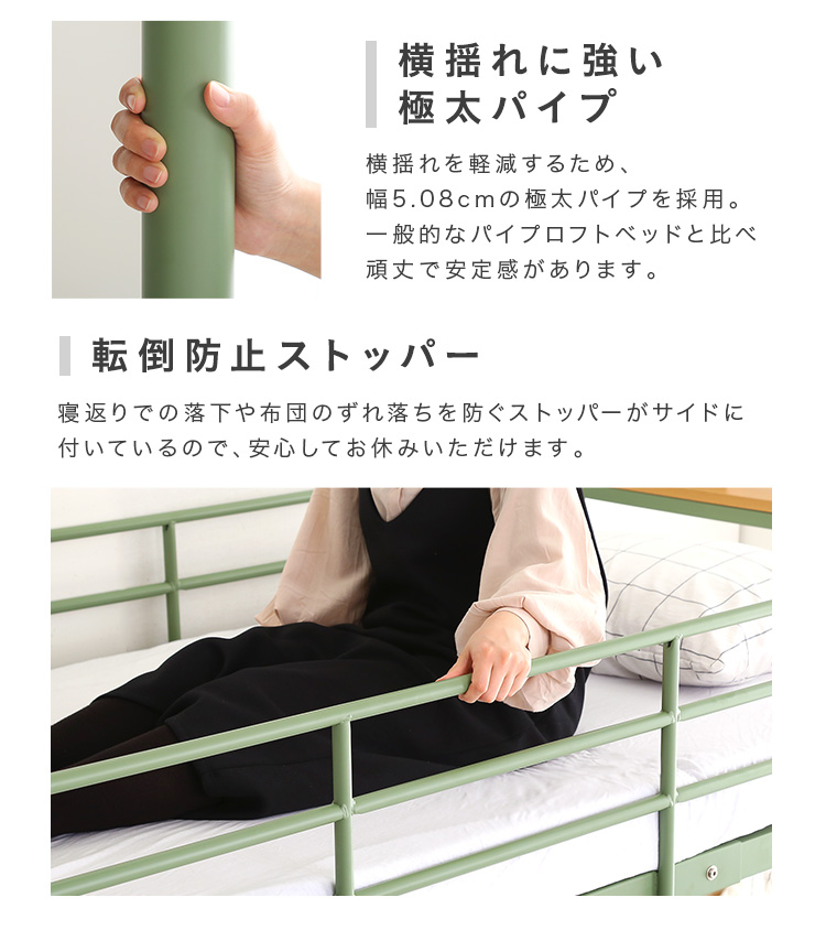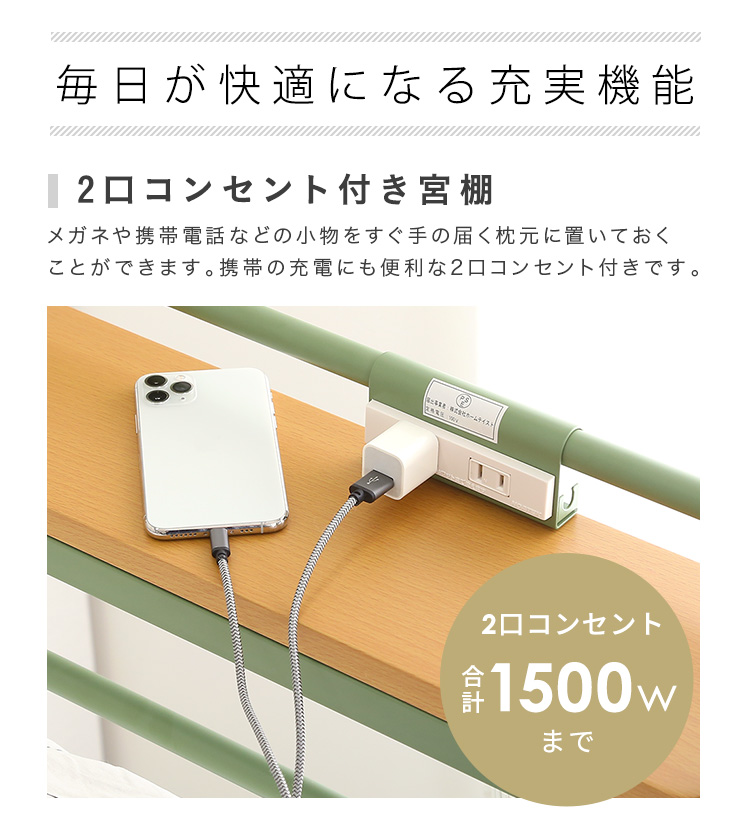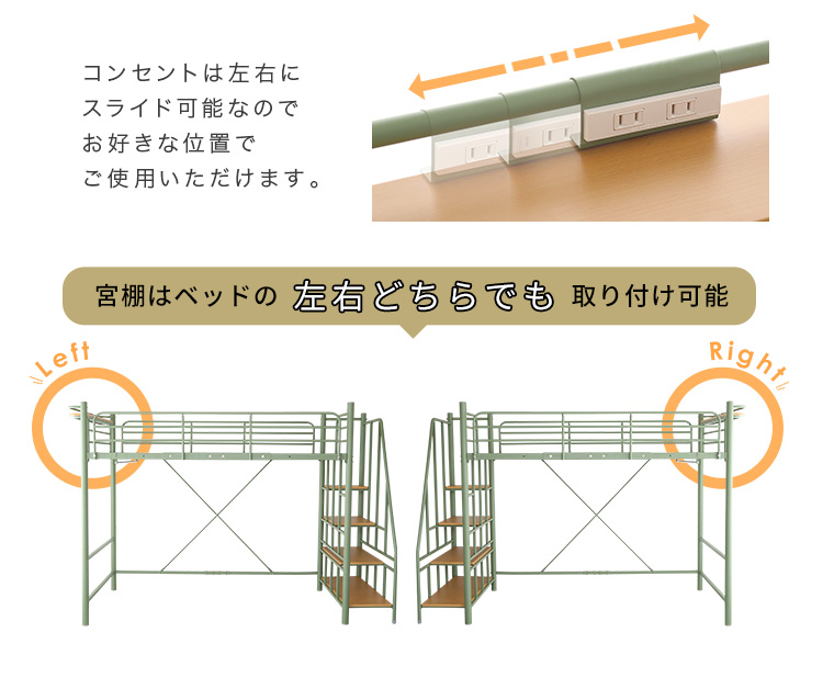 北欧 ロフトベッド シングル 階段付き 宮棚 2口コンセント