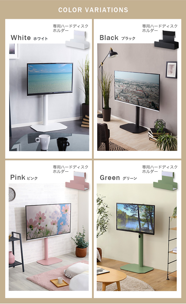 北欧インテリア 八角テレビスタンドロータイプ専用 ハードディスクホルダーセット【Vihrea -ヴィフレア-】