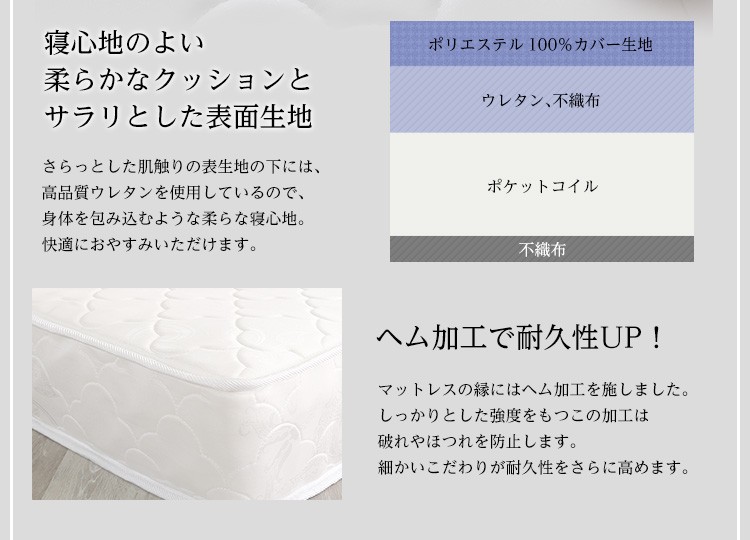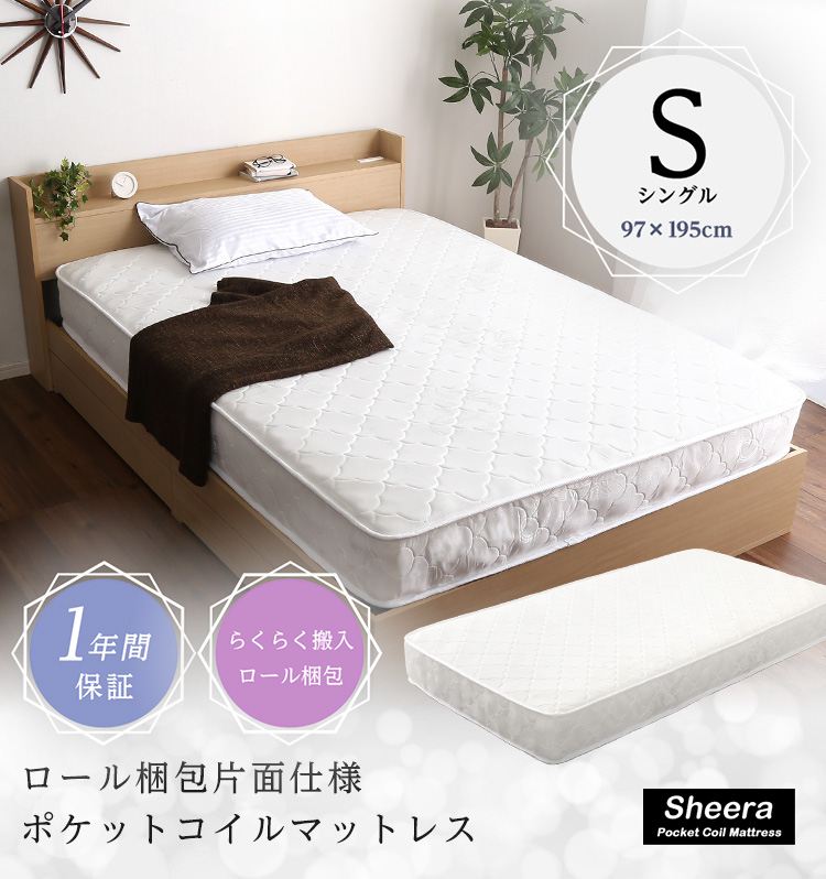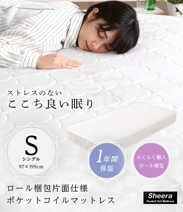 ロール梱包片面仕様ポケットコイルマットレス【Sheera-シェエラ-】シングルサイズ