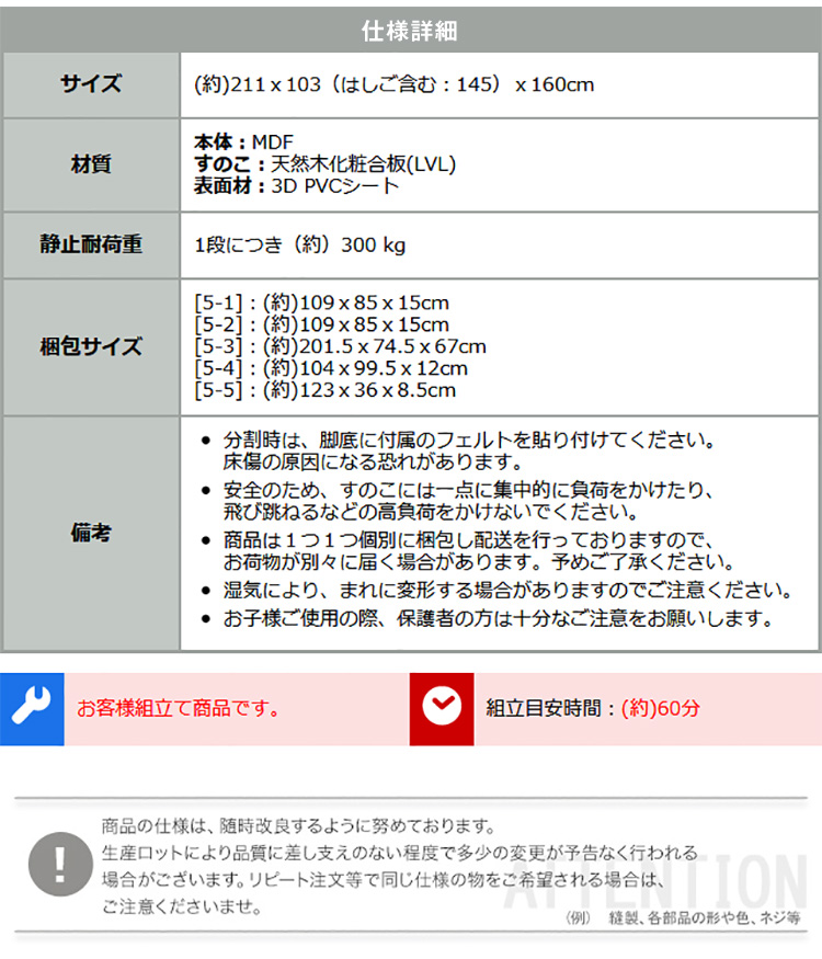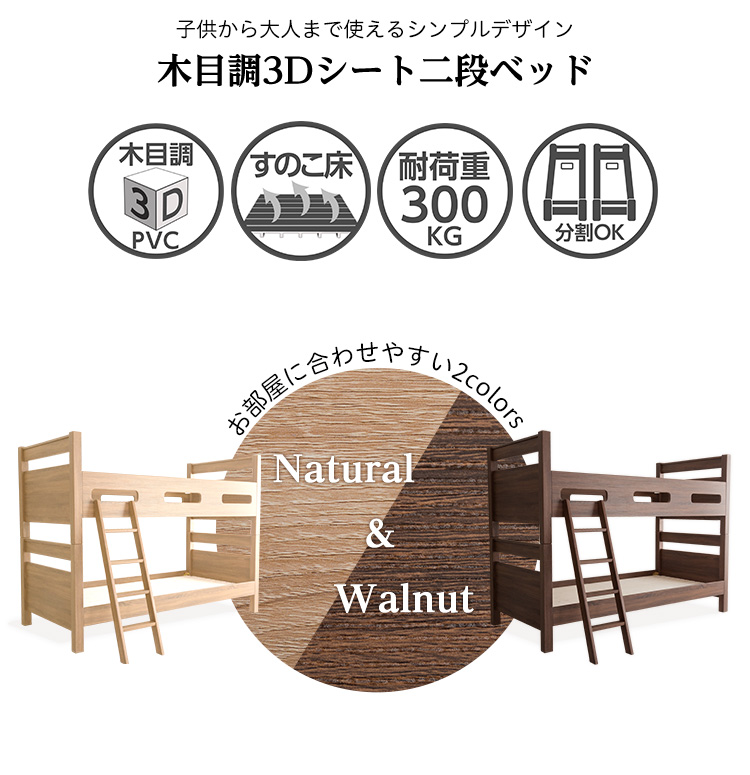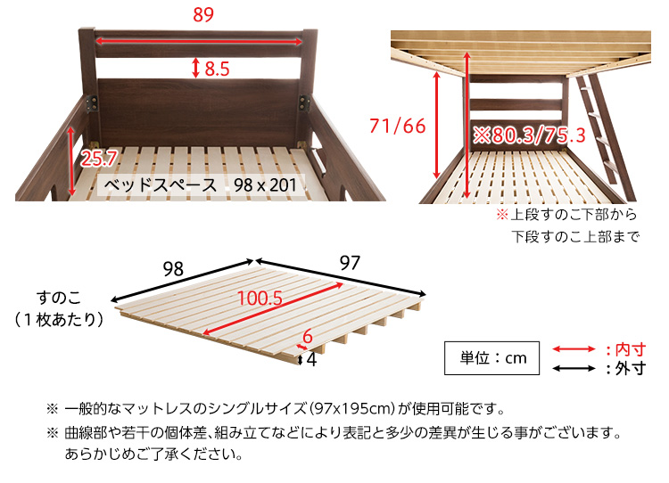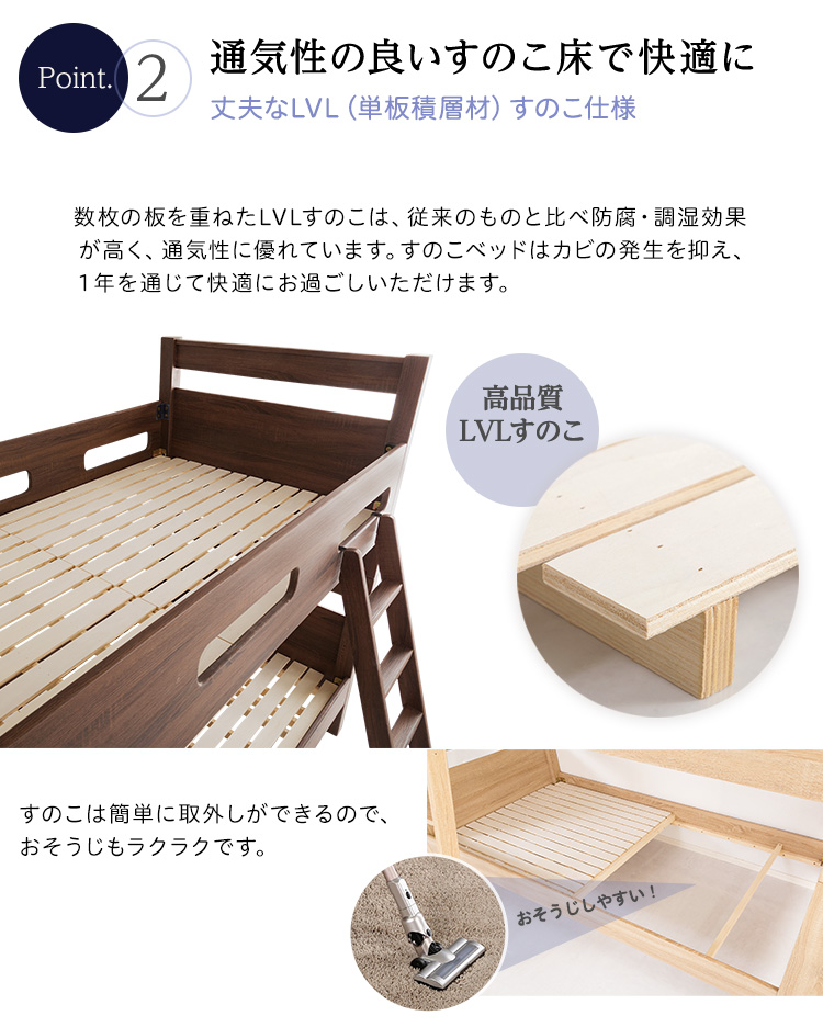 2段ベッド すのこ シンプル 通気性 安心 分割式