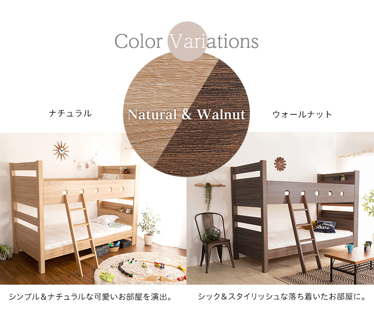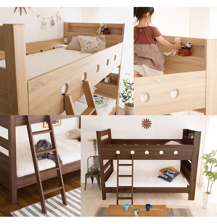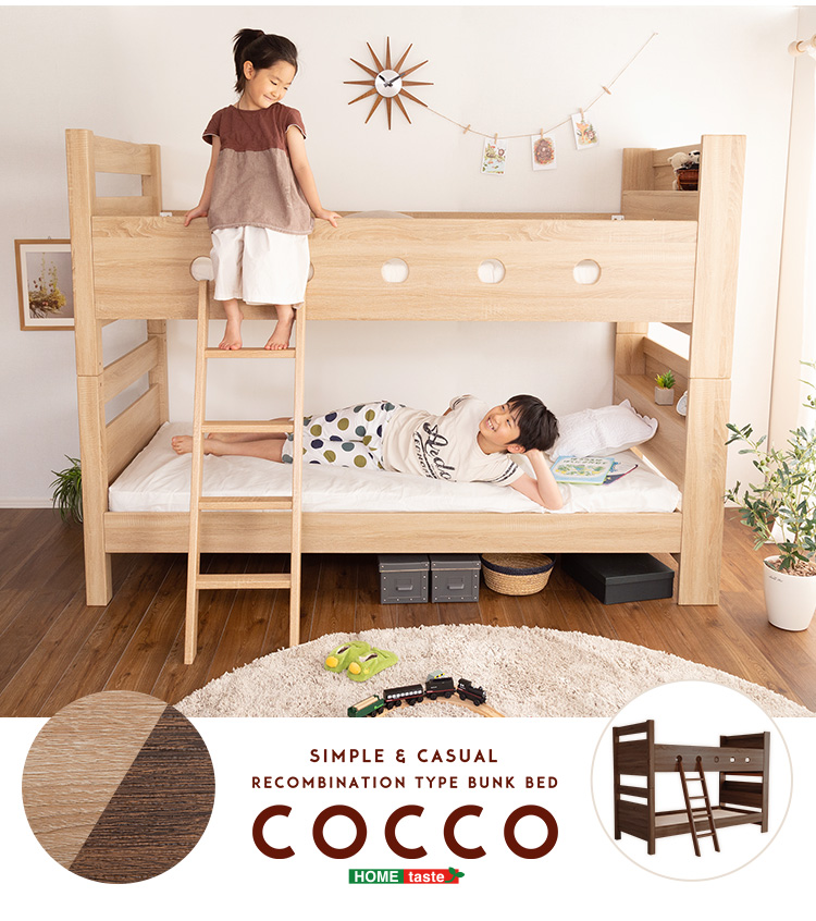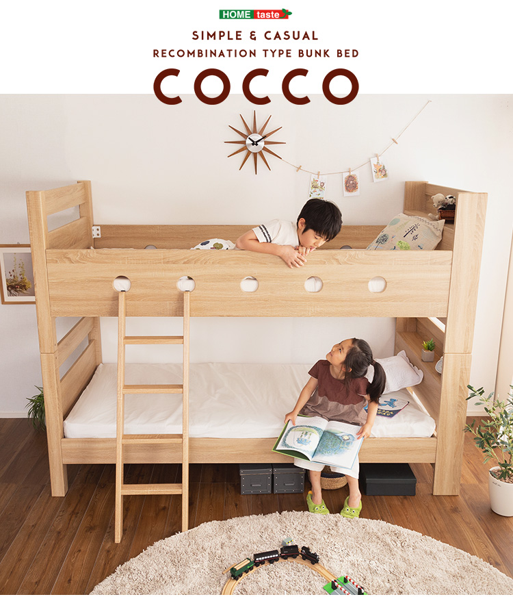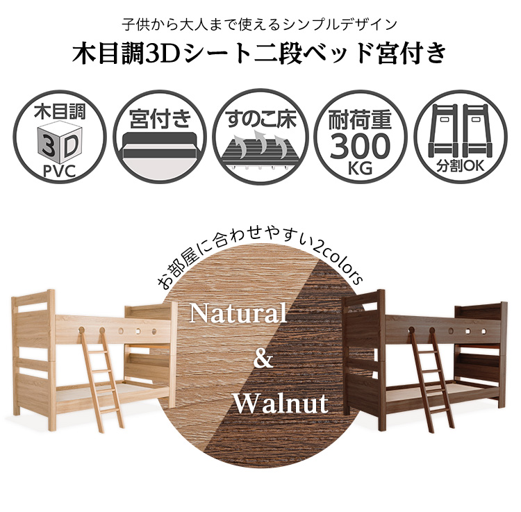 木目調3Dシート二段ベッド宮付き【COCCO-コッコ-】