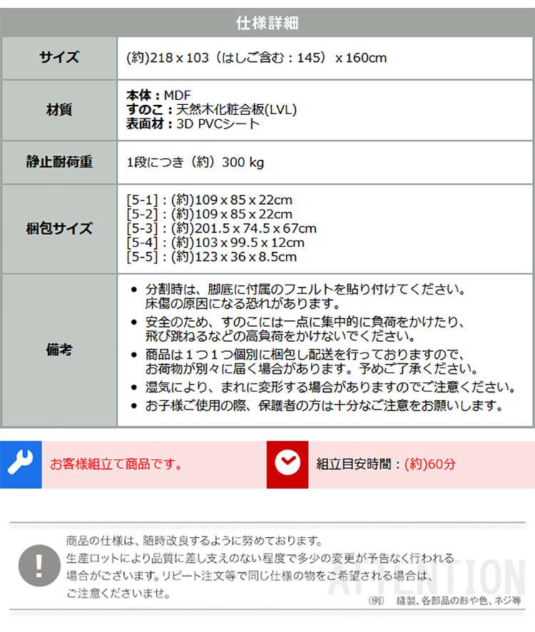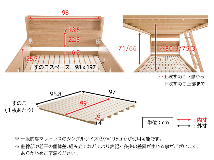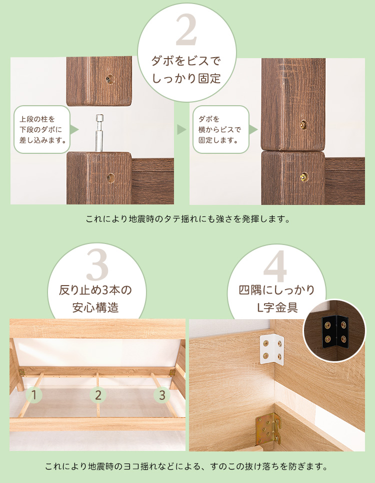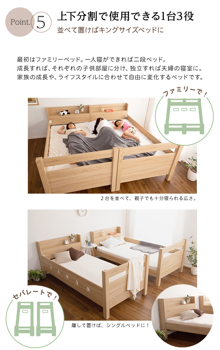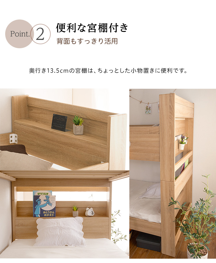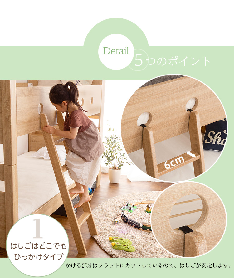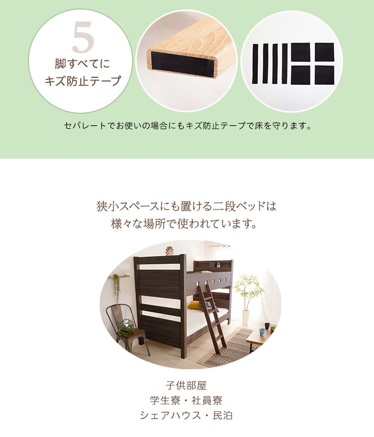 2段ベッド すのこ 宮付き 通気性 安心 分割式