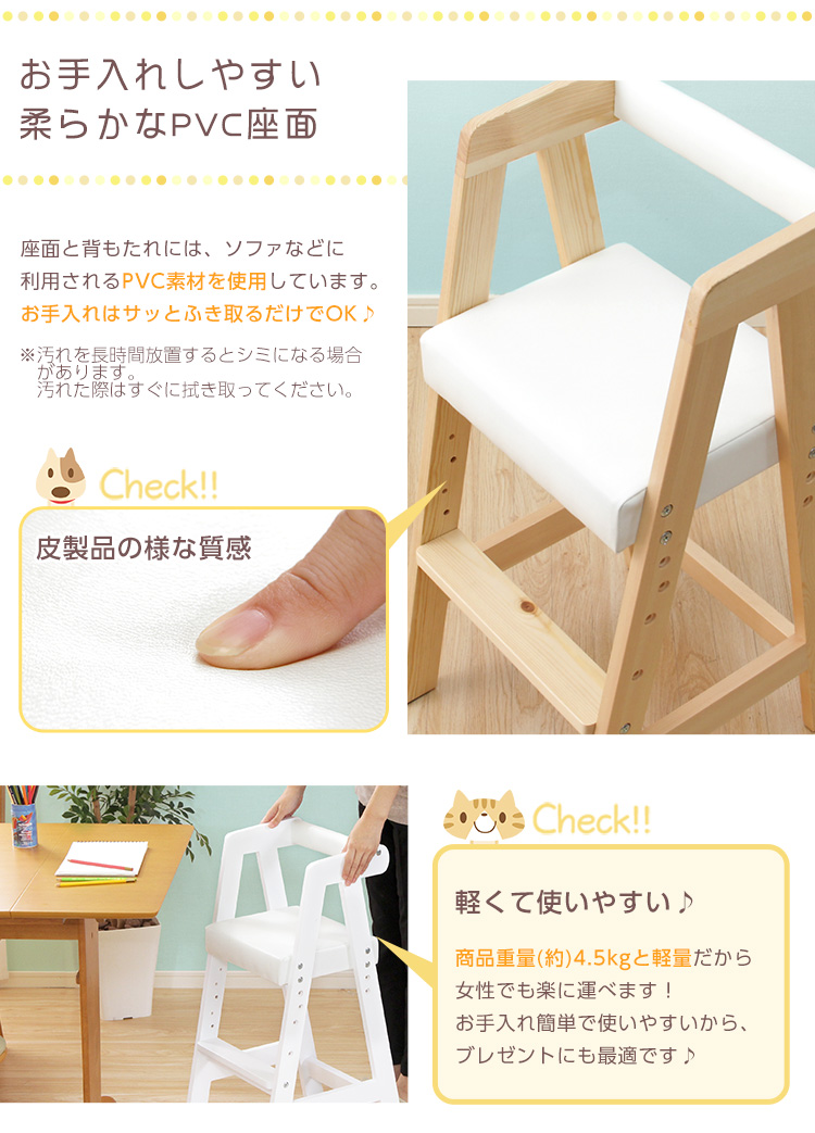 キッズチェア PVCチェアー 肘付き 木製 ハイタイプ
