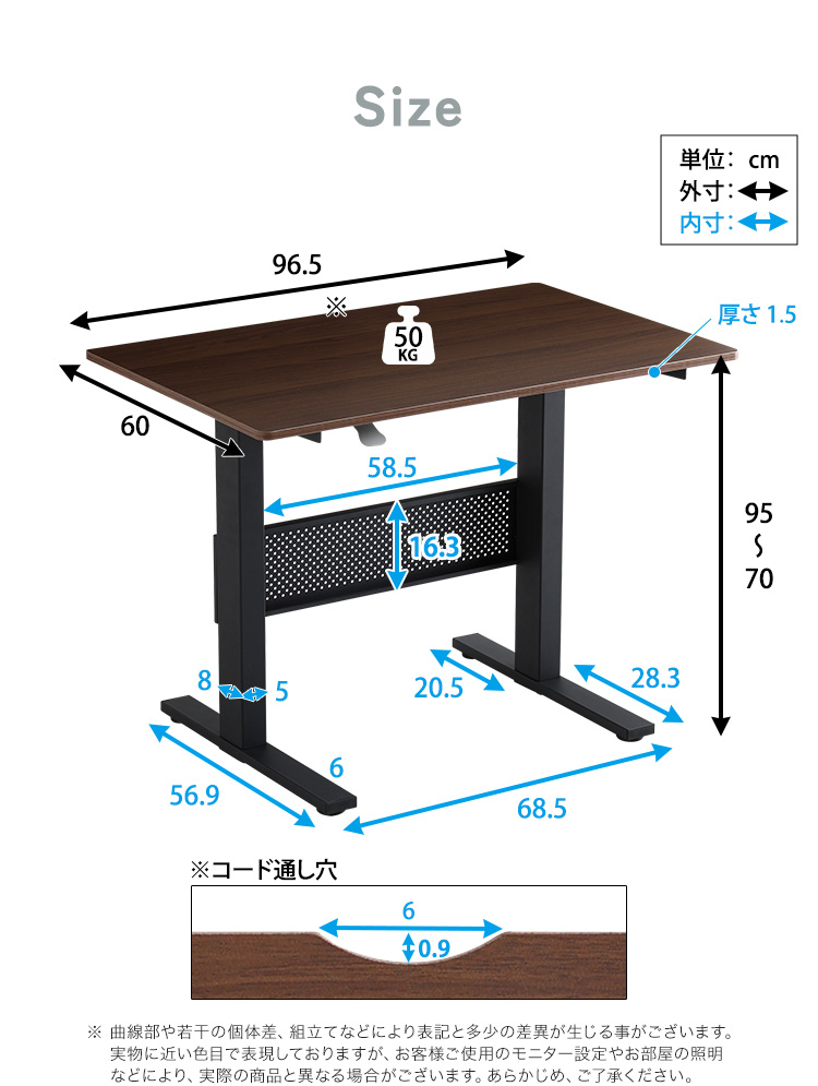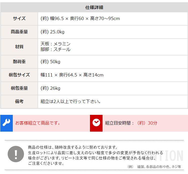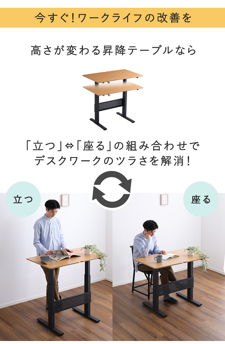 スタンディングデスク 上下昇降式デスク 幅96.5