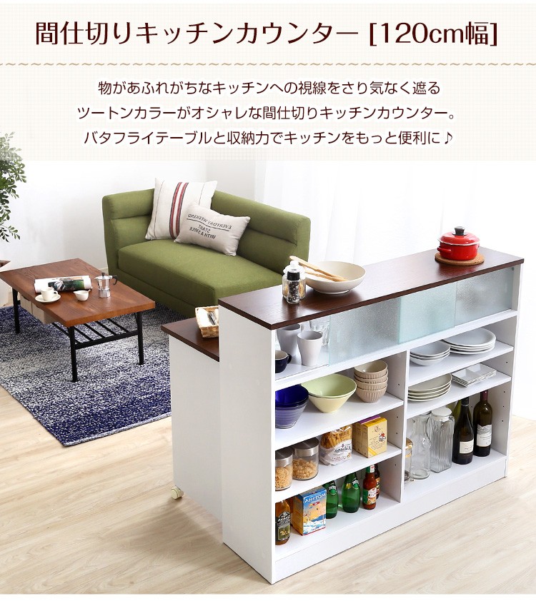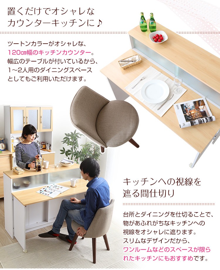 ツートンカラーがおしゃれな間仕切りキッチンカウンター(幅120cm)ナチュラル、ブラウン | Kiley-カイリー-