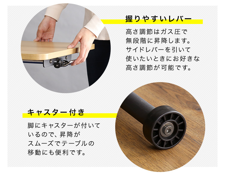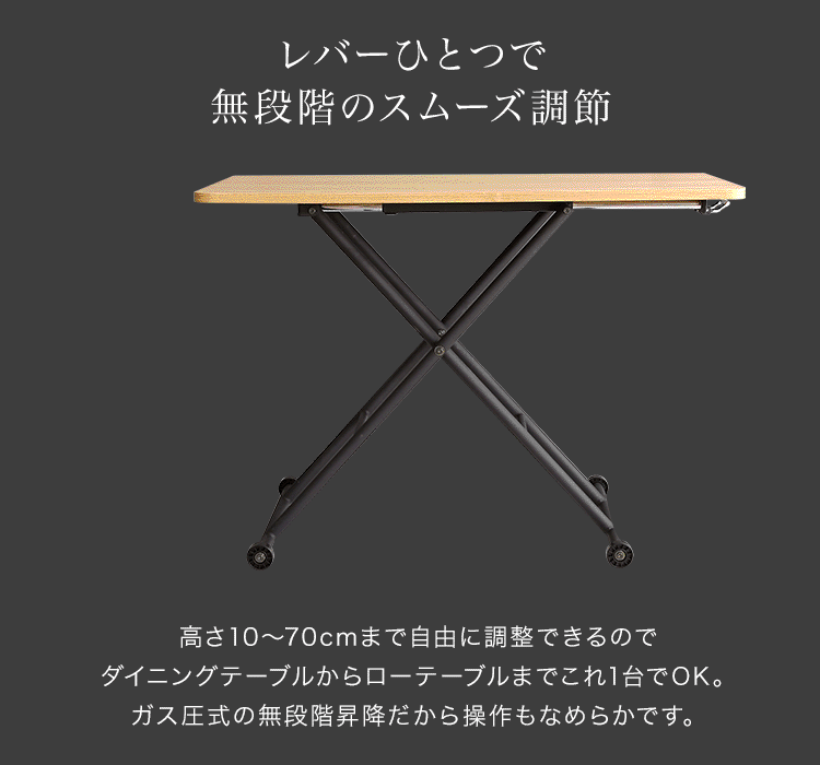 折りたたみ式無段階ガス圧昇降テーブル【BUXUS-バクサス-】