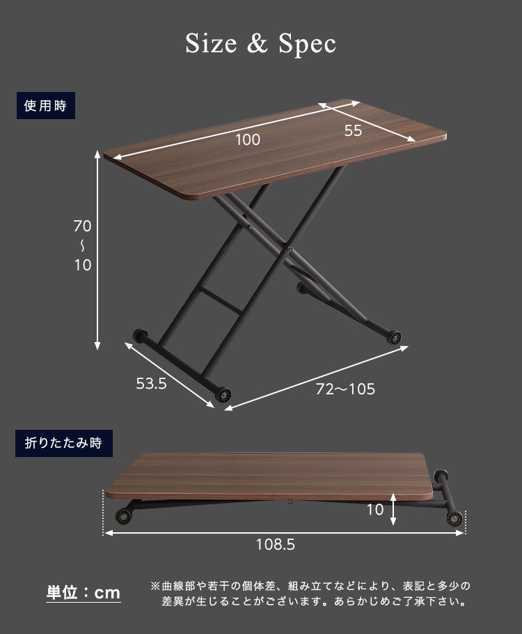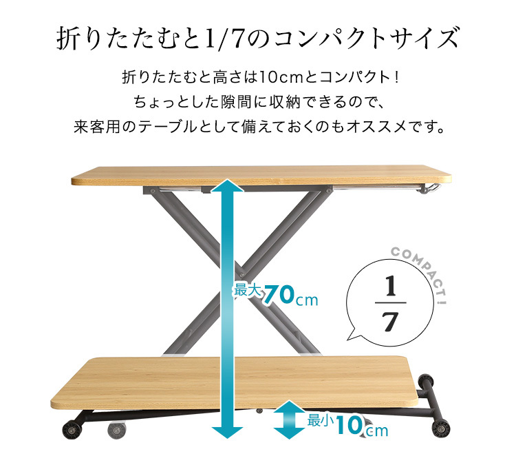 昇降テーブル 折りたたみ式 高さ調整 完成品